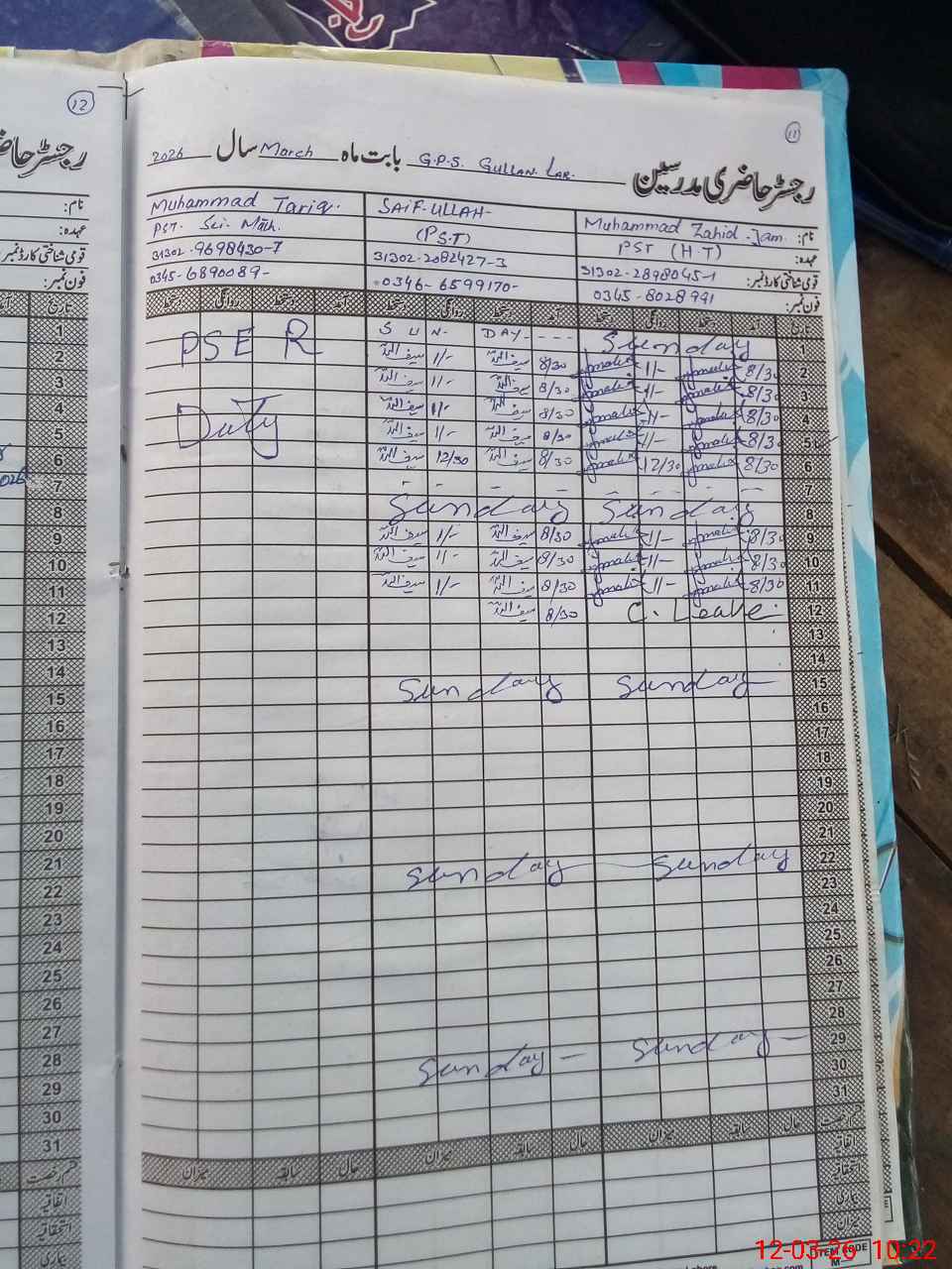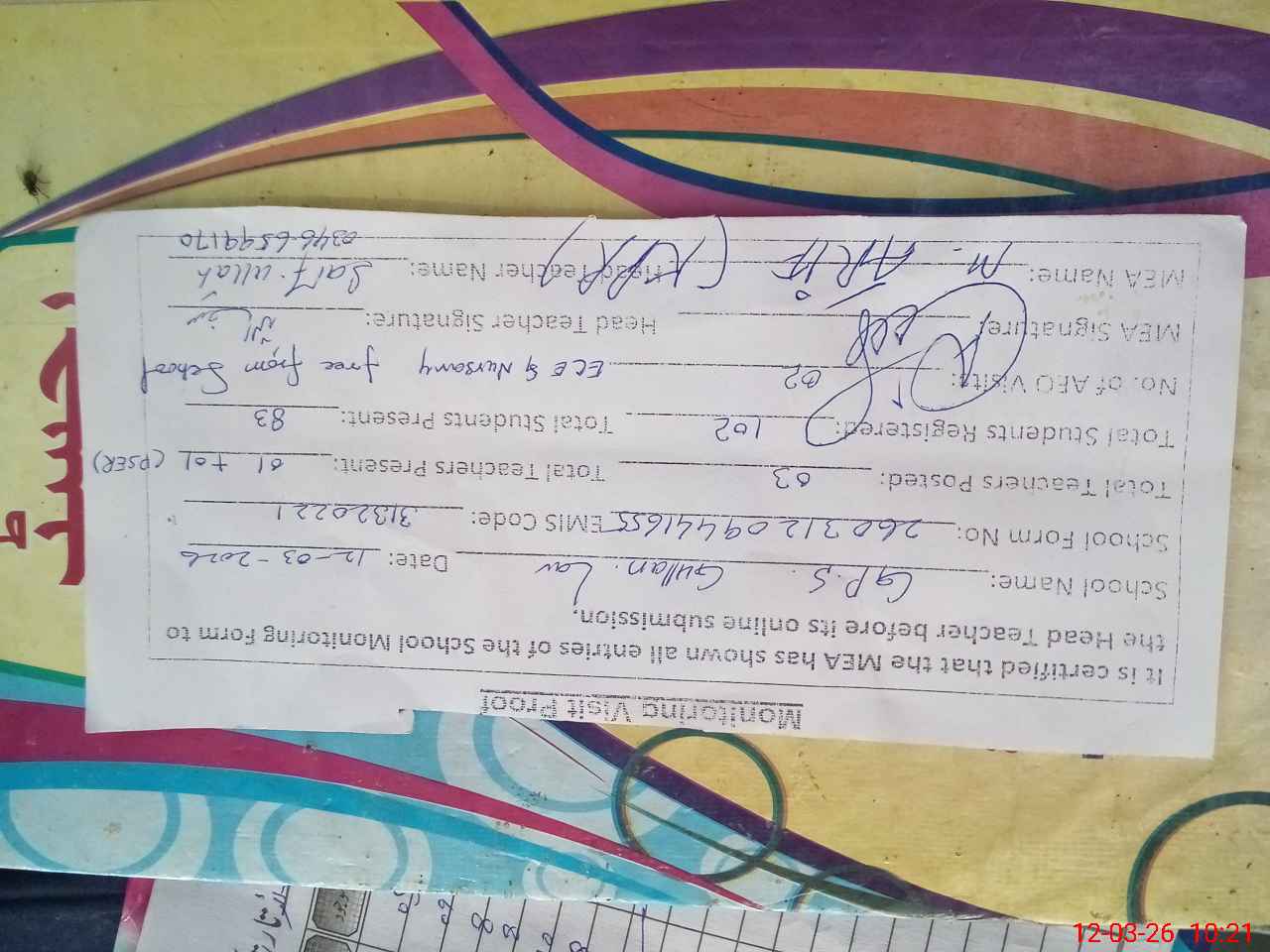 | EMIS Code: 31320221 | Name of School: GPS GULAN LAR LIAQAT PUR | |||