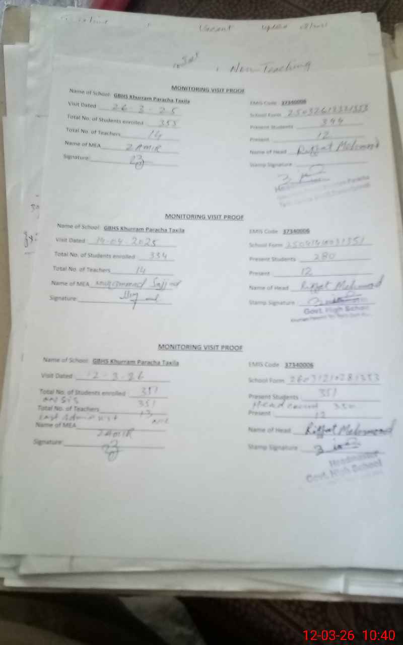 | EMIS Code: 37340006 | Name of School: GHS KHURRAM PARACHA | |||