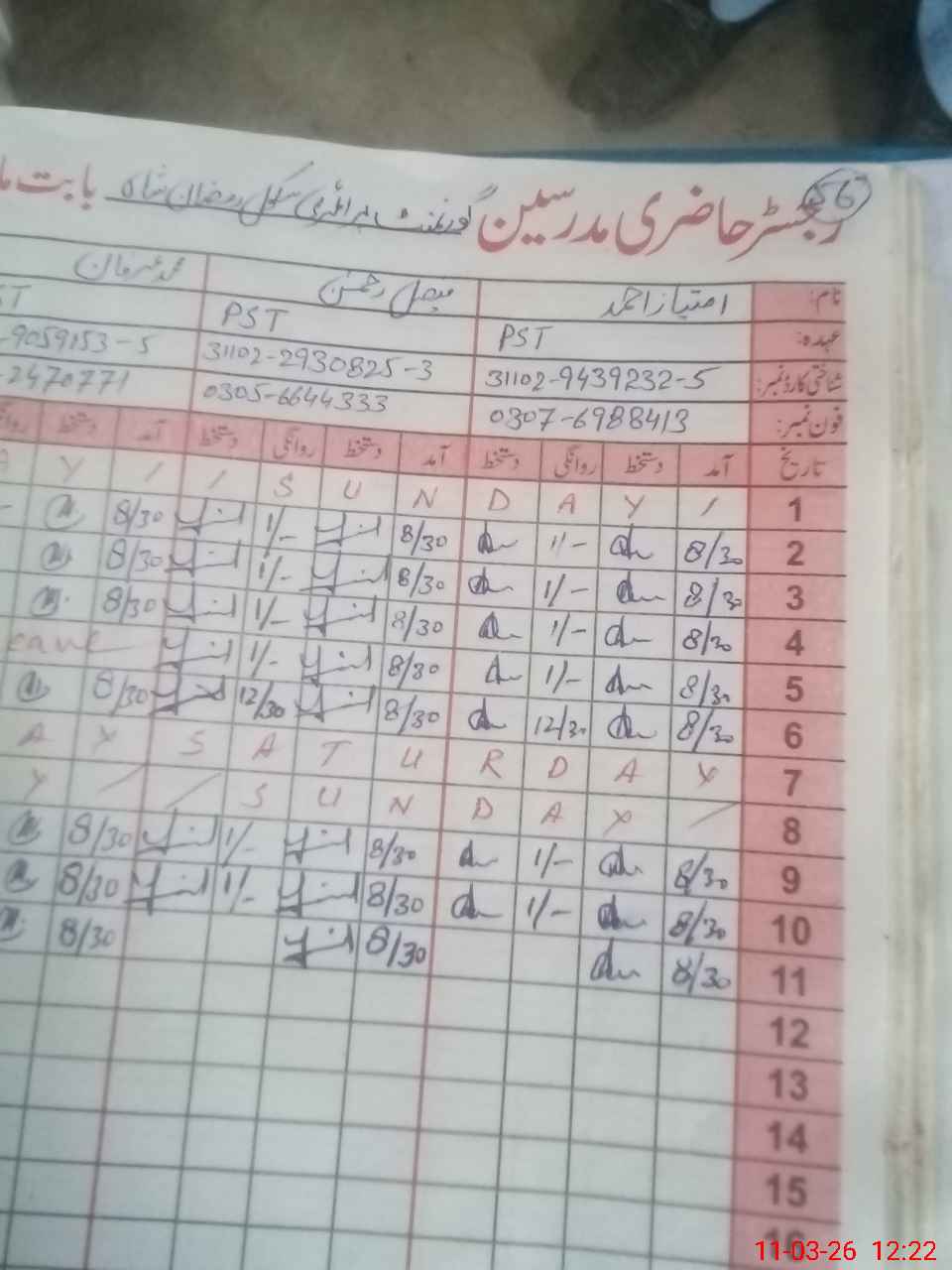 | Name: IM**** AH**** Designation: (School Headmaster's/Headmistress's) PST Phone/Cell Number: 03**** |