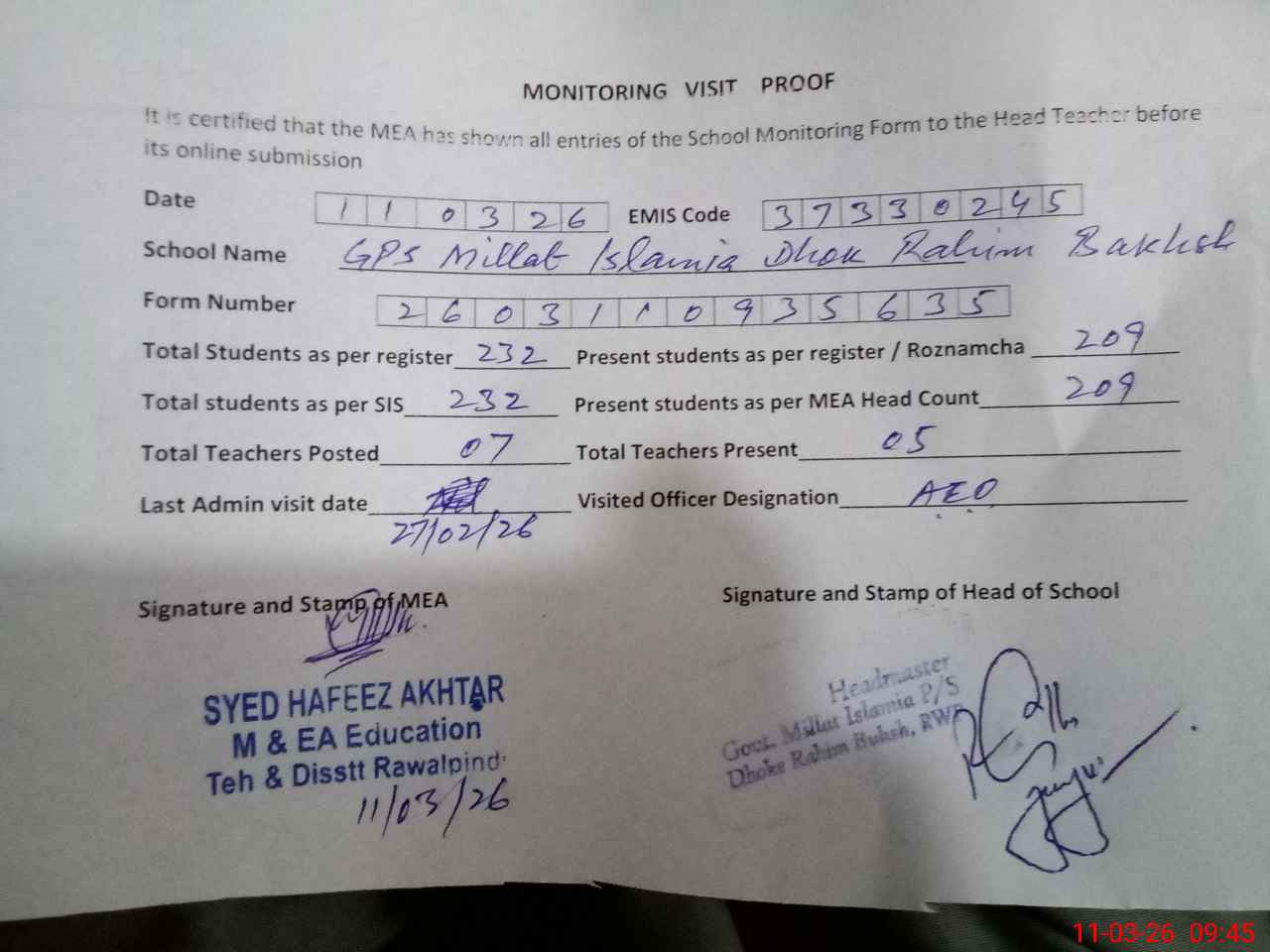 | EMIS Code: 37330245 | Name of School: GPS MILLAT ISLAMIA DHOK RAHEEM BAKHSH RAWALPINDI | |||