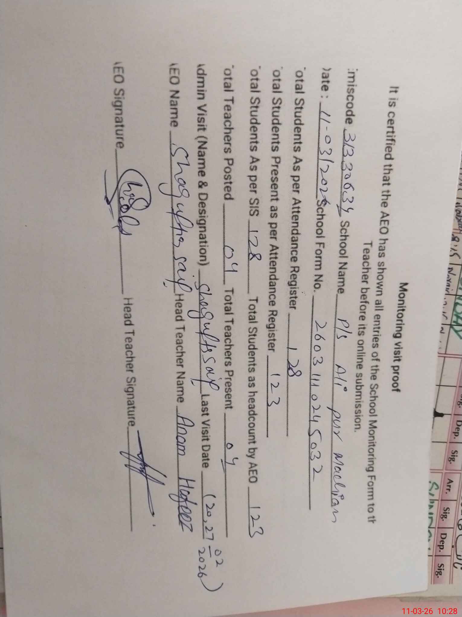 | Certified that this School was Inspected by the Undersigned MEA/DMO Today and the Information Stated Above is as Per Record. | |||||