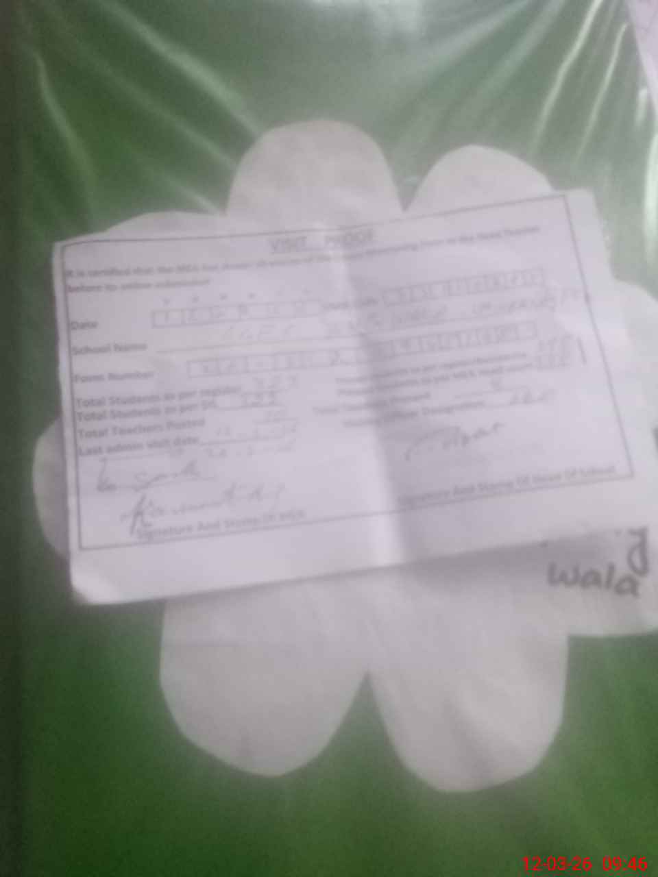 | Attendance Register | Head Teacher | MEA with School | Visit Proof |