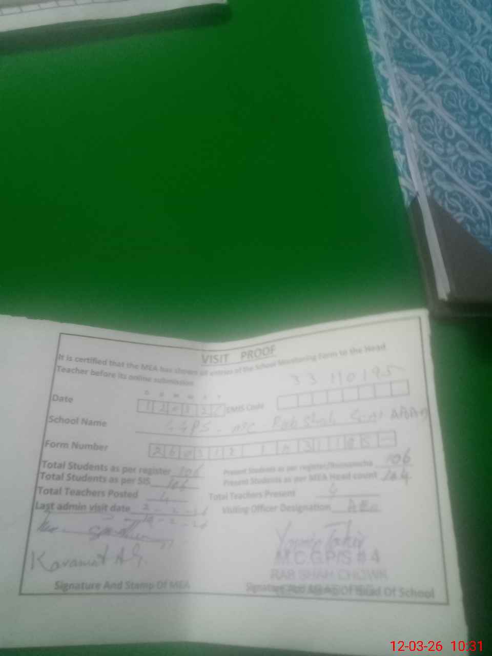 | EMIS Code: 33110195 | Name of School: GGPS MC RAB SHAH CHOWK GHULAM MUHAMMAD ABAD | |||