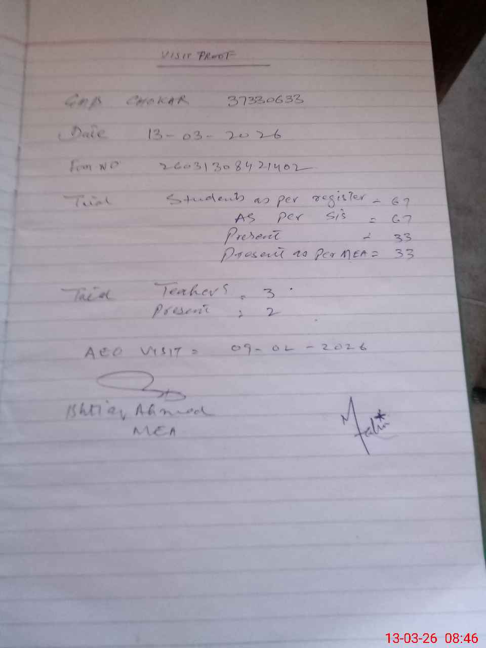 | EMIS Code: 37330633 | Name of School: GMPS CHOKAR | |||