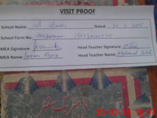 | Attendance Register | Head Teacher | MEA with School | Visit Proof |