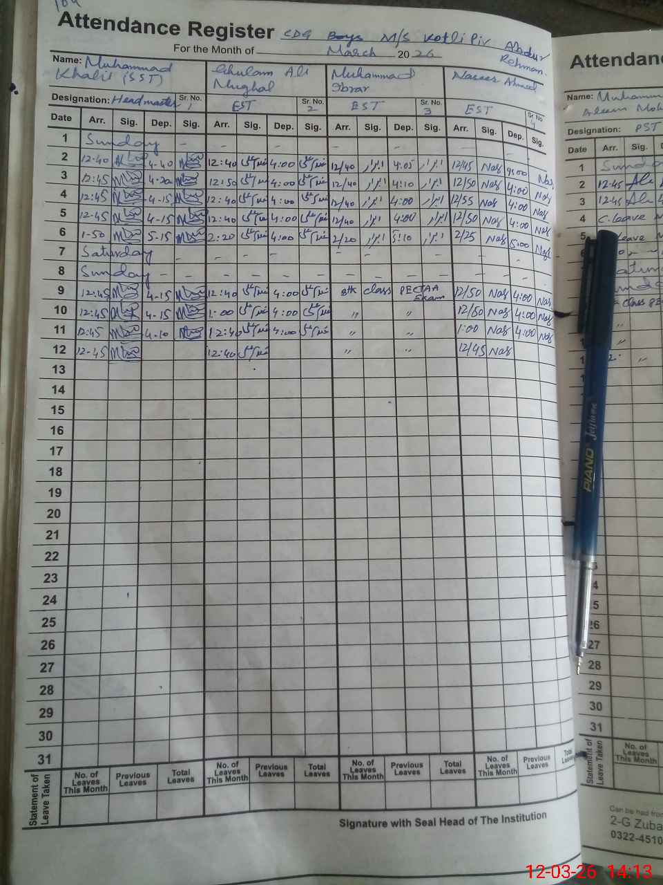 | 35**** | Mu**** Al**** Mo**** | PST Arts | Regular | 1 | 0 | 0 | 0 | 0 | 0 | 0 | 0 | 1 | Exam Duty |