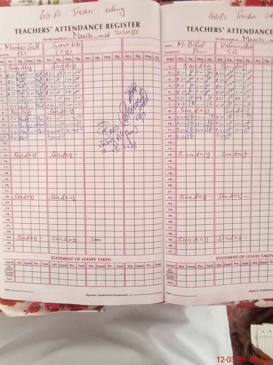 | Name: SH**** MU**** Designation: (School Headmaster's/Headmistress's) PST Phone/Cell Number: 03**** |