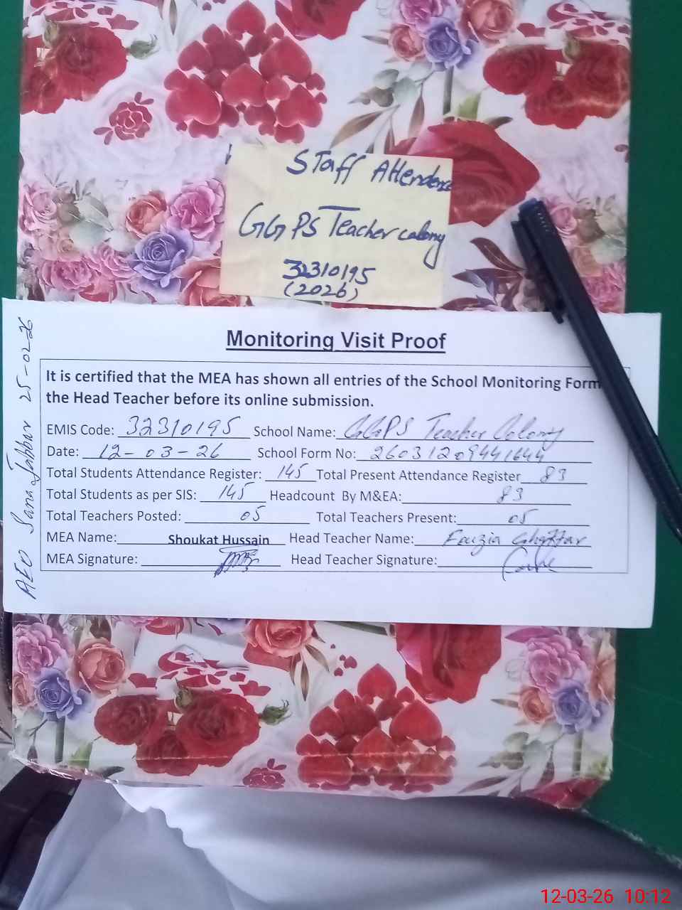 | Attendance Register | Head Teacher | MEA with School | Visit Proof |