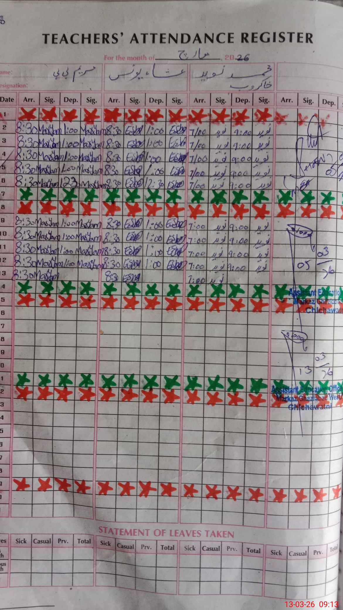 | Name: Su**** Za**** Designation: (School Headmaster's/Headmistress's) PST Phone/Cell Number: 03**** |