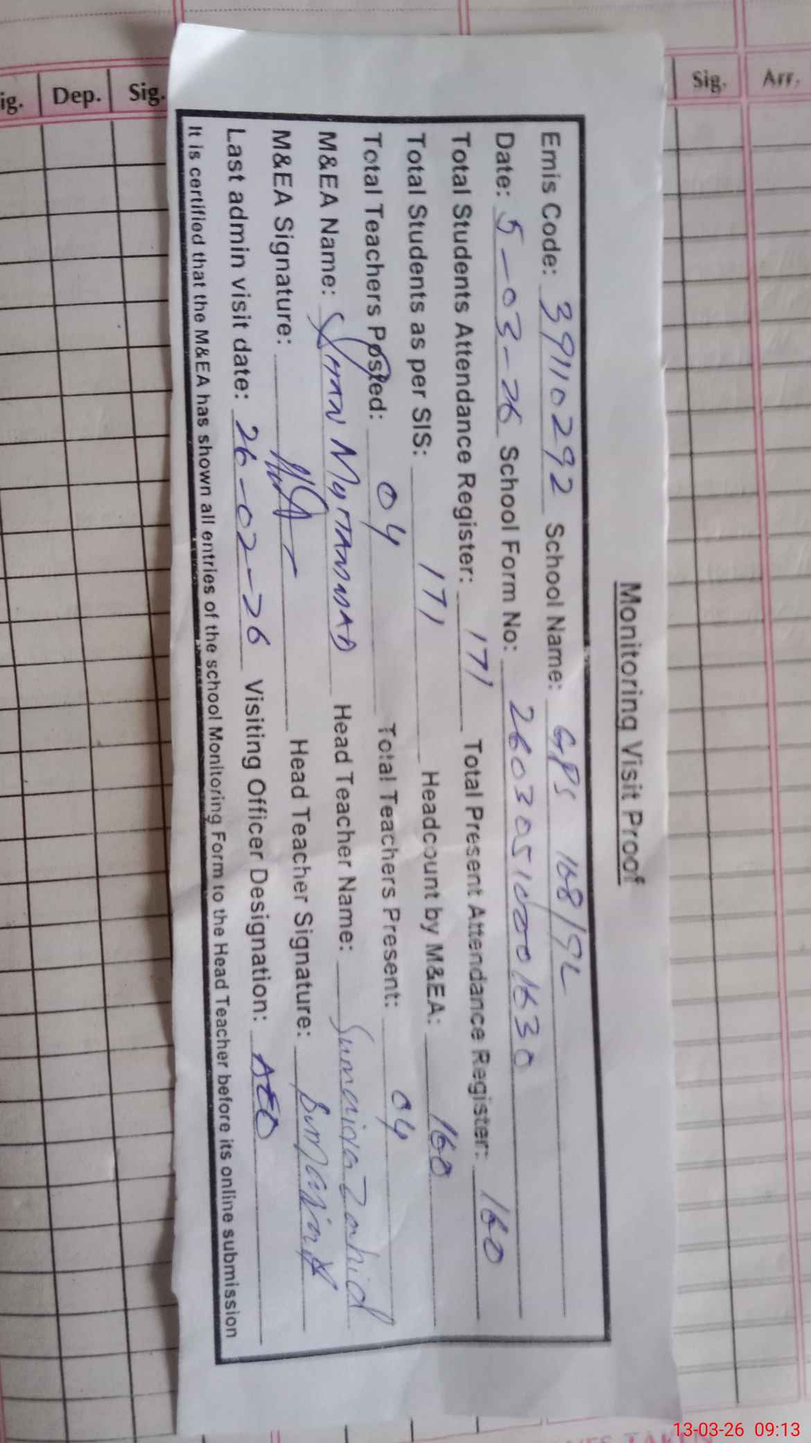 | EMIS Code: 39110292 | Name of School: GPS 168/9-L | |||