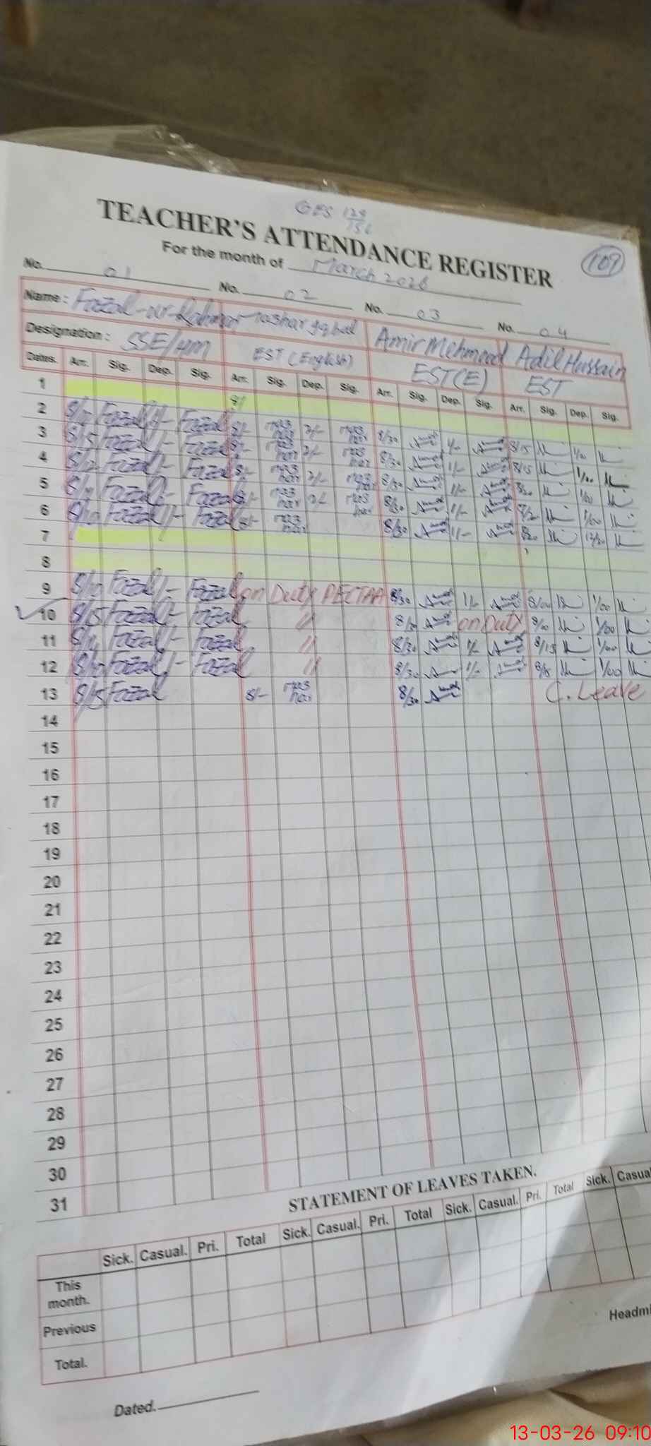 | Name: FA**** URRA**** Designation: (School Headmaster's/Headmistress's) SSE ENG Phone/Cell Number: 03**** |