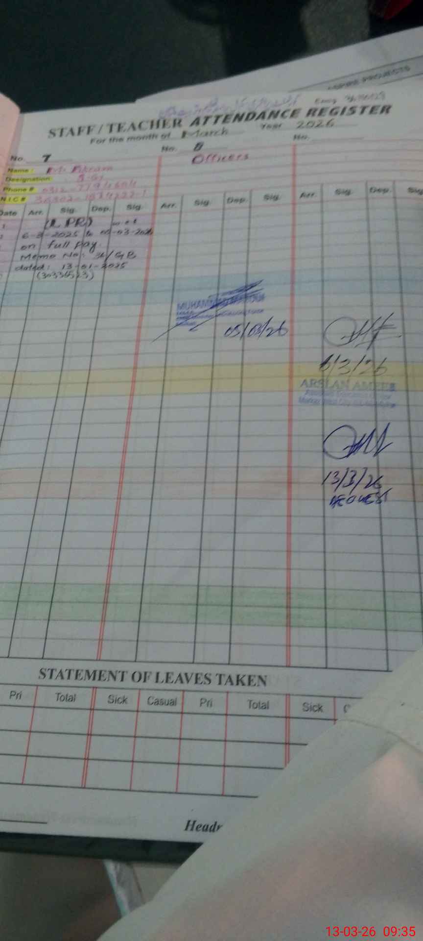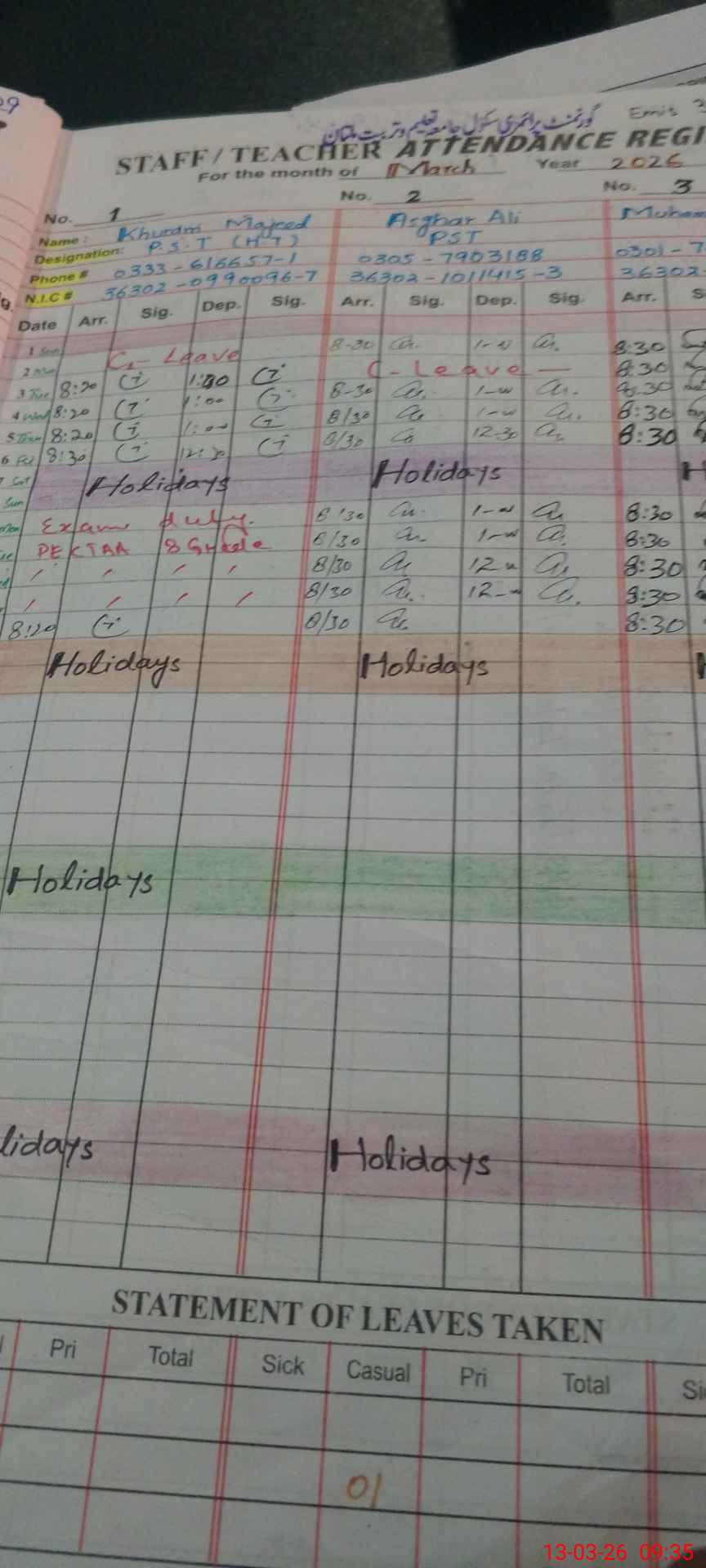 | Name: Kh**** Ma**** Designation: (School Headmaster's/Headmistress's) HEADMASTER Phone/Cell Number: 03**** |