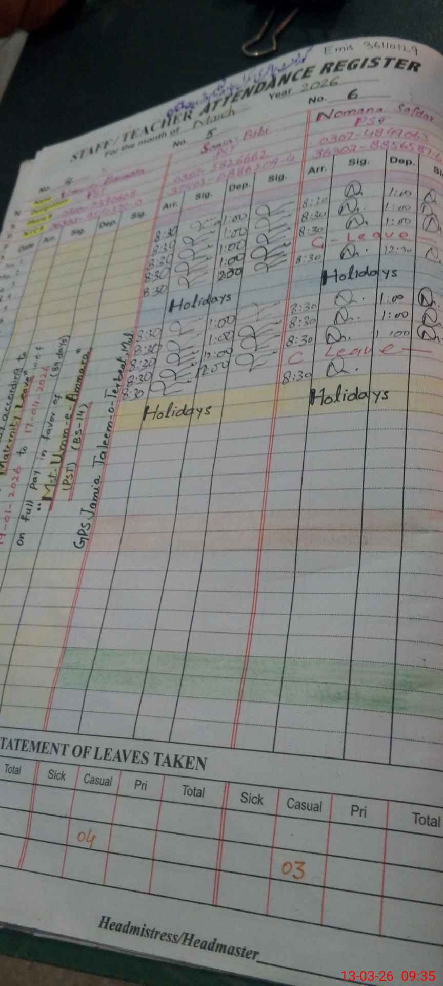 | EMIS Code: 36110129 | Name of School: GPS JAMIA TALEEM O TERBEAT INSIDE BOHER GATE MULTAN | |||