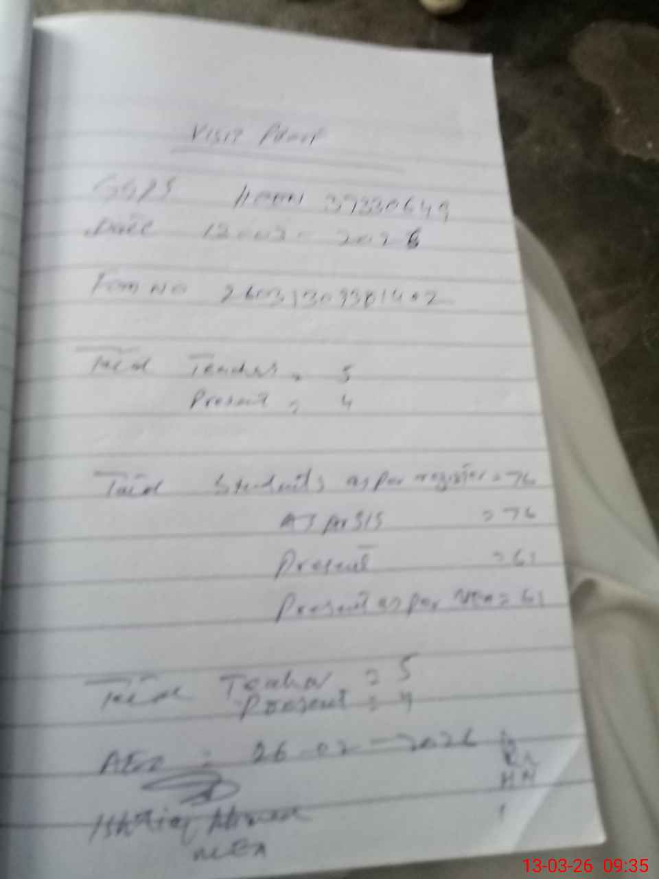 | Attendance Register | Head Teacher | MEA with School | Visit Proof |