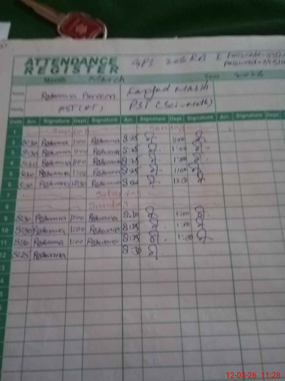 | CNIC | Full Name | Designation | R/C | Absence During Last Calender Month |