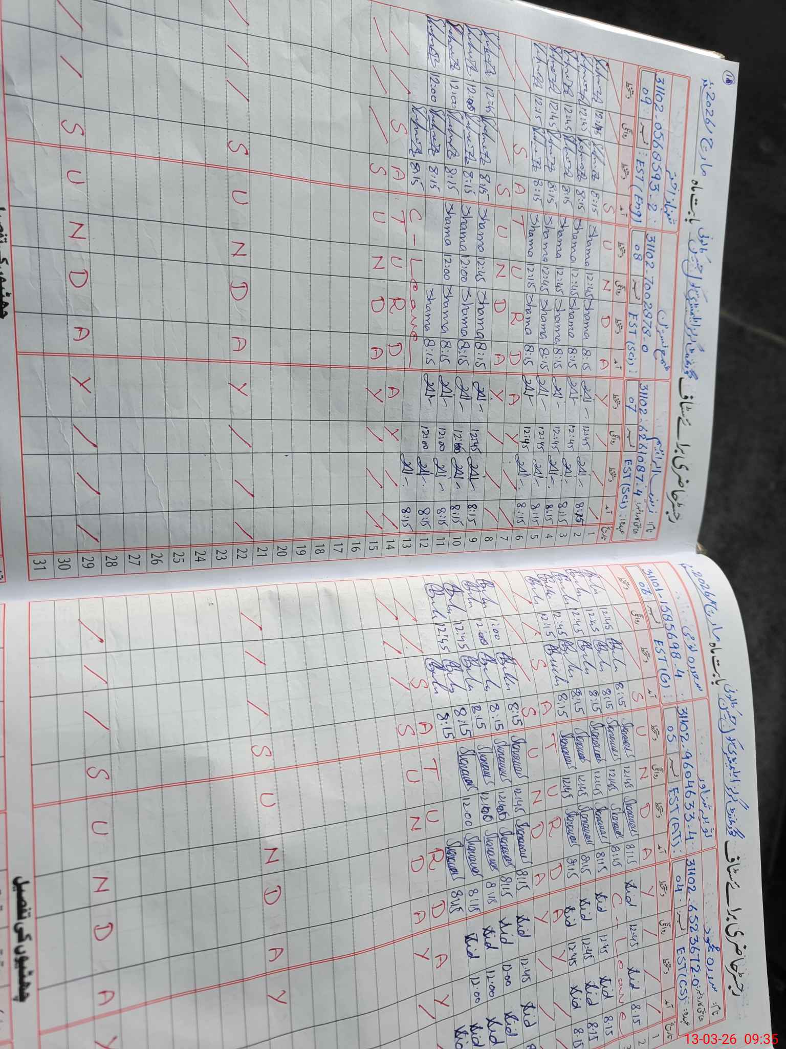 | 31**** | Sh**** Na**** | EST Science | Regular | 0 | 0 | 0 | 0 | 0 | 0 | 0 | 0 | 0 | Absent (Un-Authorized) |
