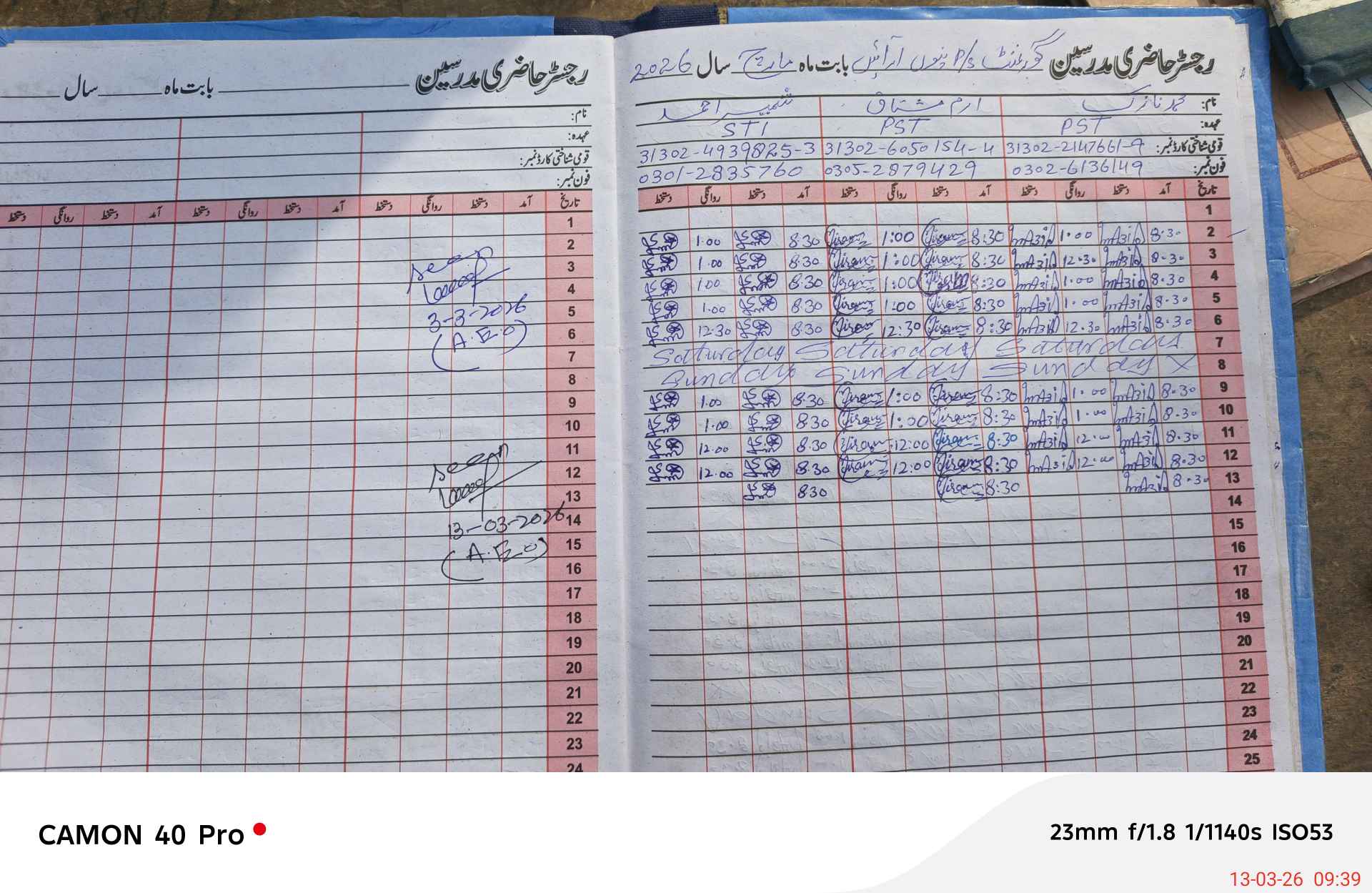 | Name: MU**** NA**** Designation: (School Headmaster's/Headmistress's) PST/PTC/JV Phone/Cell Number: 03**** |