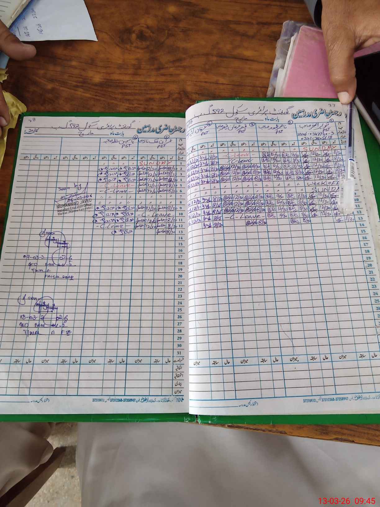 | Name: TA**** AS**** Designation: (School Headmaster's/Headmistress's) PST Phone/Cell Number: 03**** |