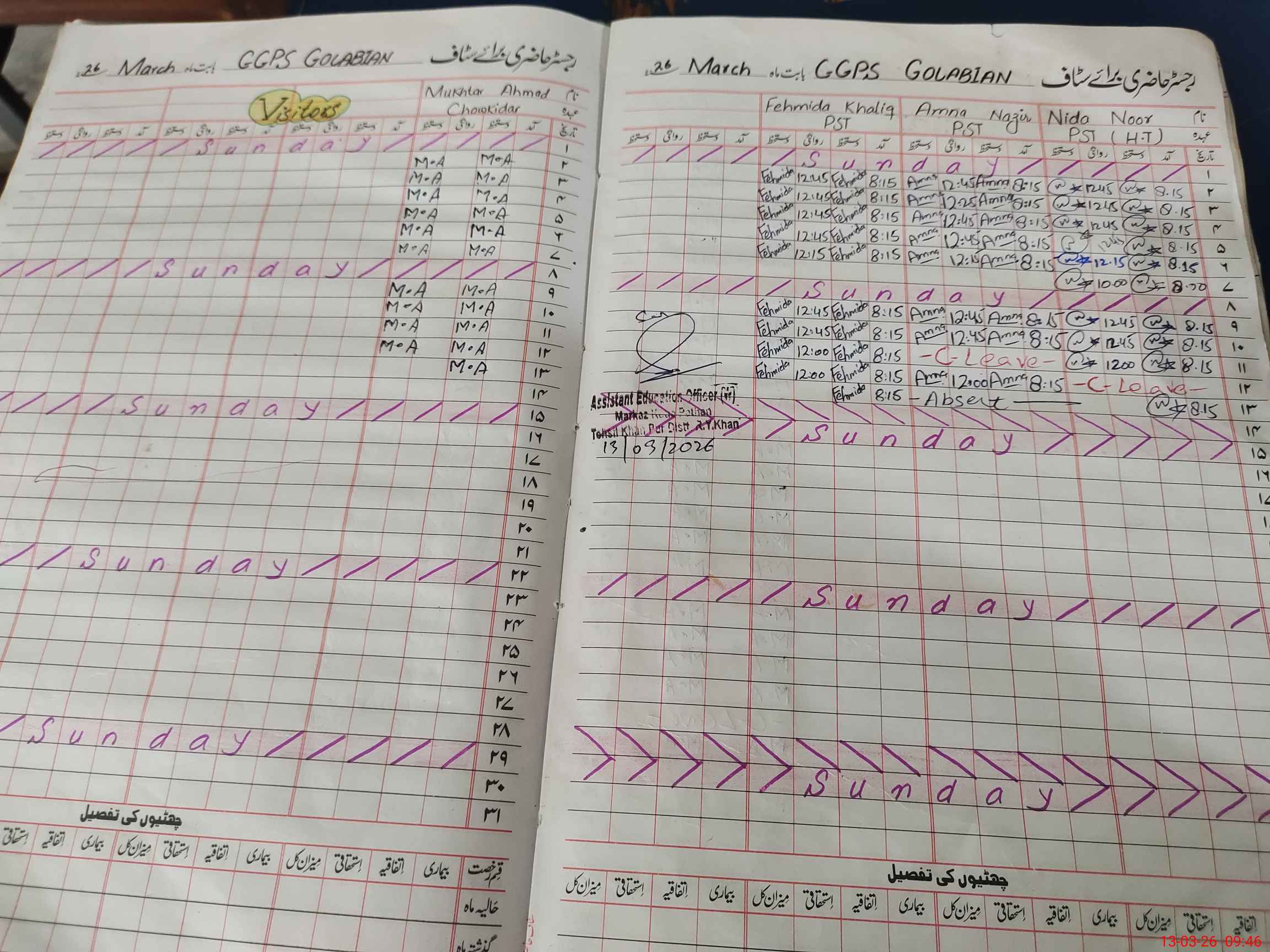 | Attendance Register | Head Teacher | MEA with School | Visit Proof |