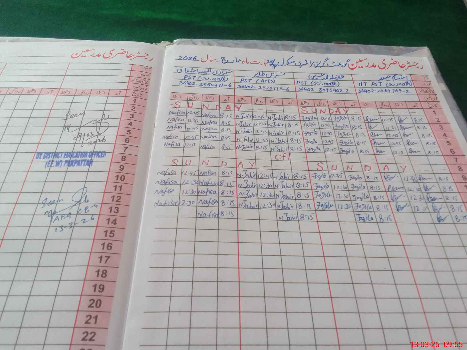 | Name: Ib**** Ha**** Designation: (School Headmaster's/Headmistress's) PST Phone/Cell Number: 03**** |