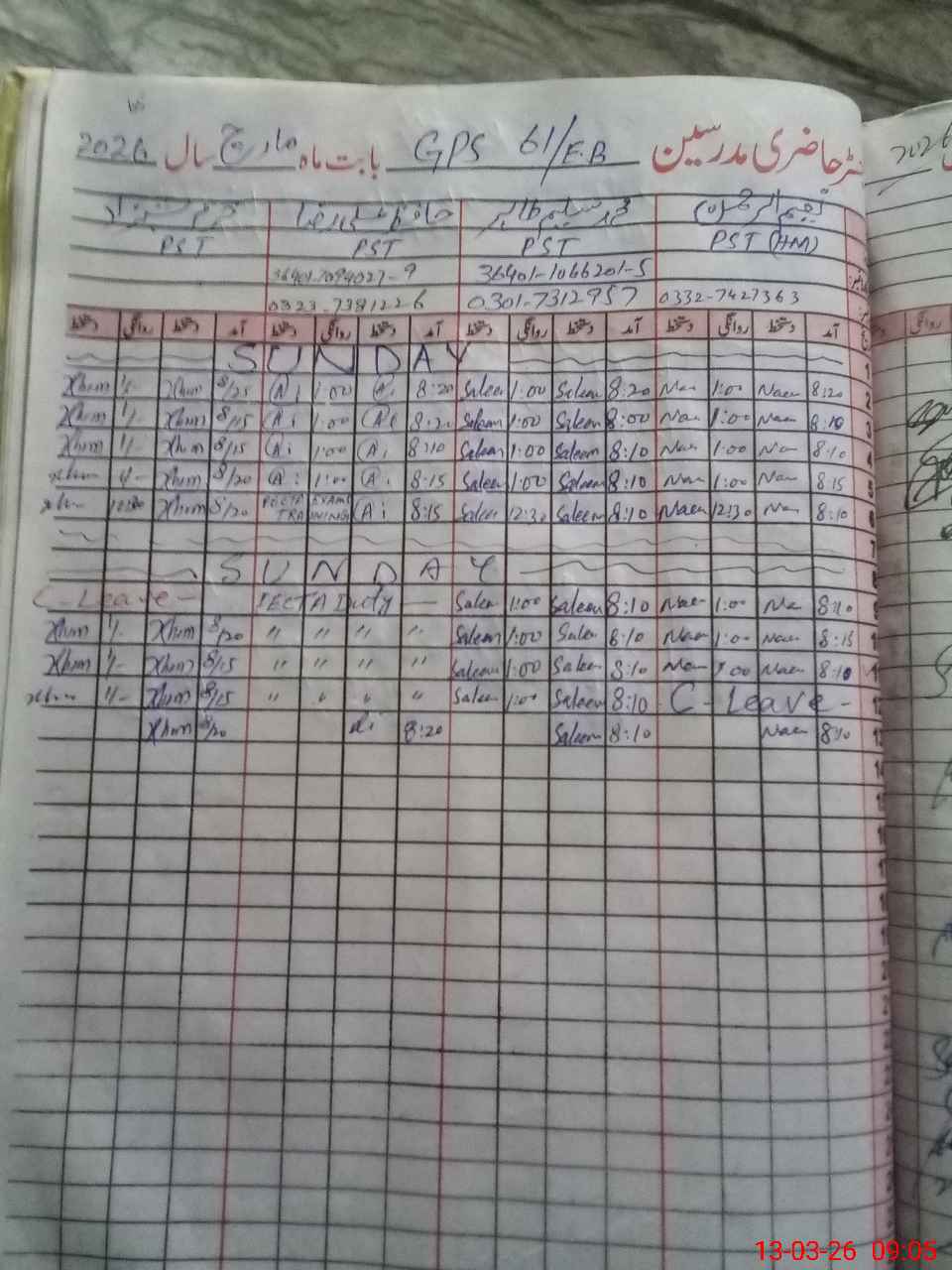 | Name: NA**** Designation: (School Headmaster's/Headmistress's) PST Phone/Cell Number: 03**** |