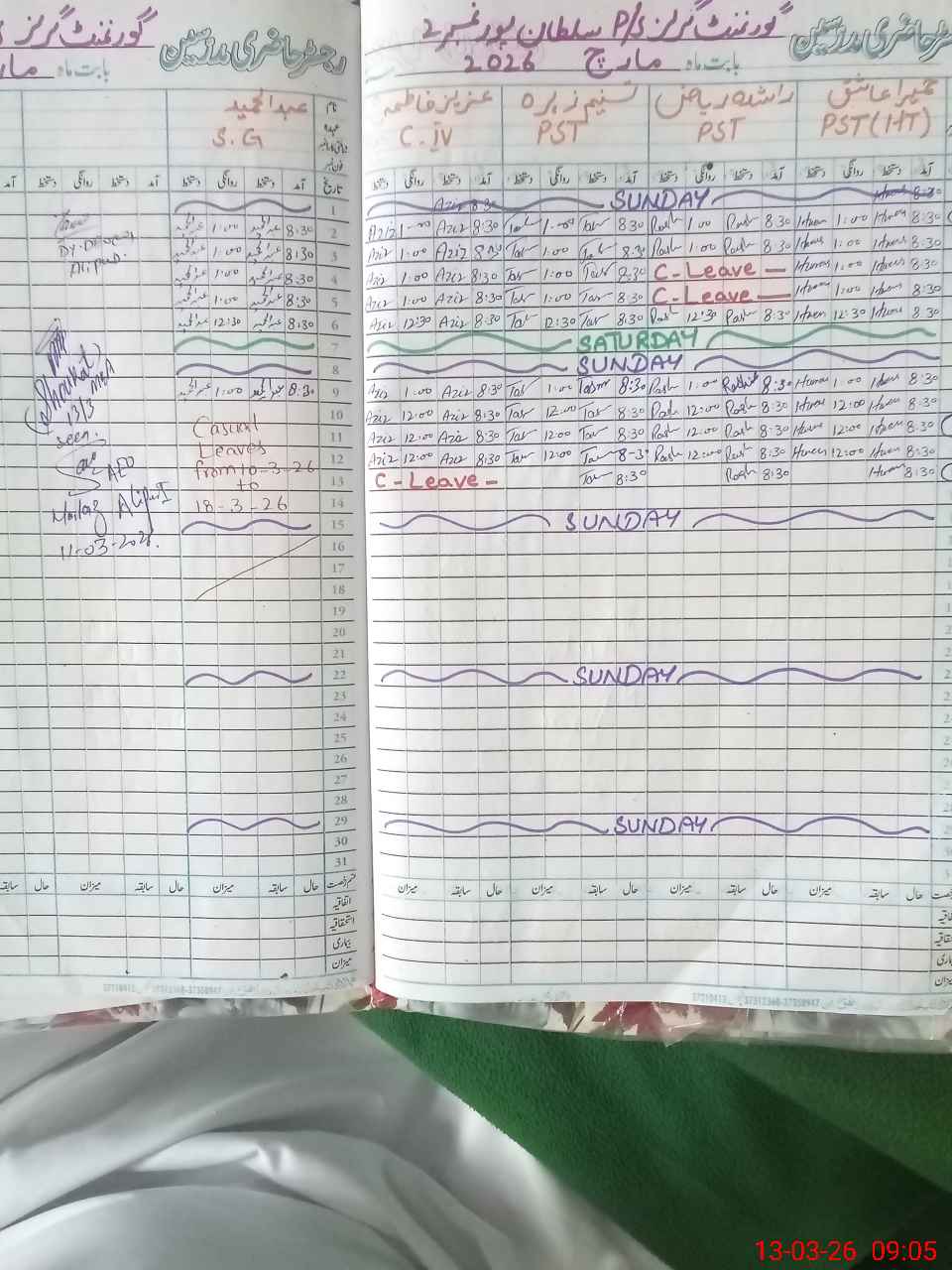 | 32**** | Ta**** Za**** | PST Arts | Regular | 0 | 0 | 0 | 0 | 0 | 0 | 0 | 0 | 0 | Absent (Un-Authorized) |
