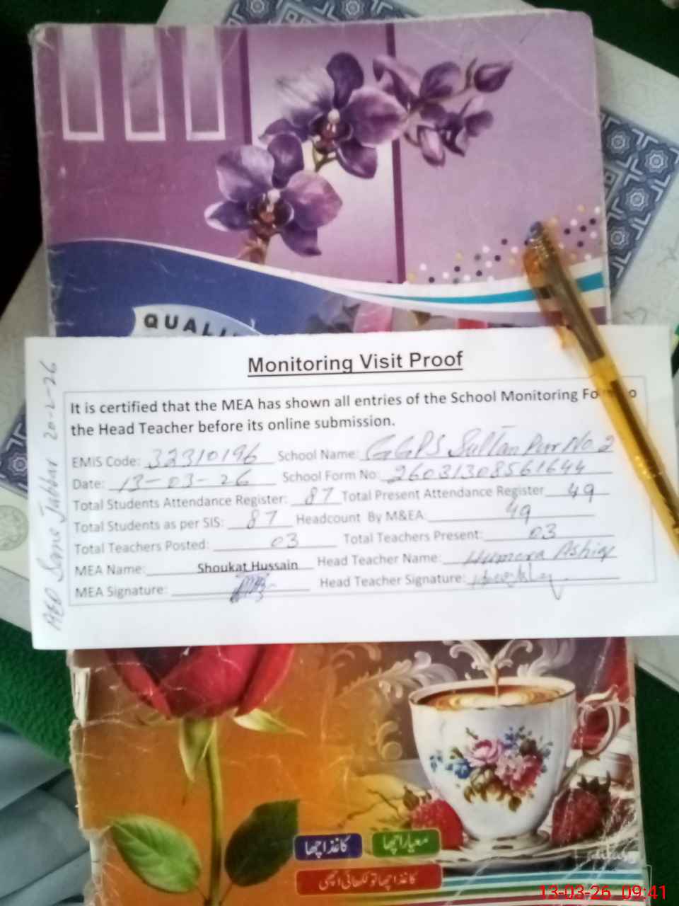 | EMIS Code: 32310196 | Name of School: GGPS SULTAN PUR NO. 2 | |||