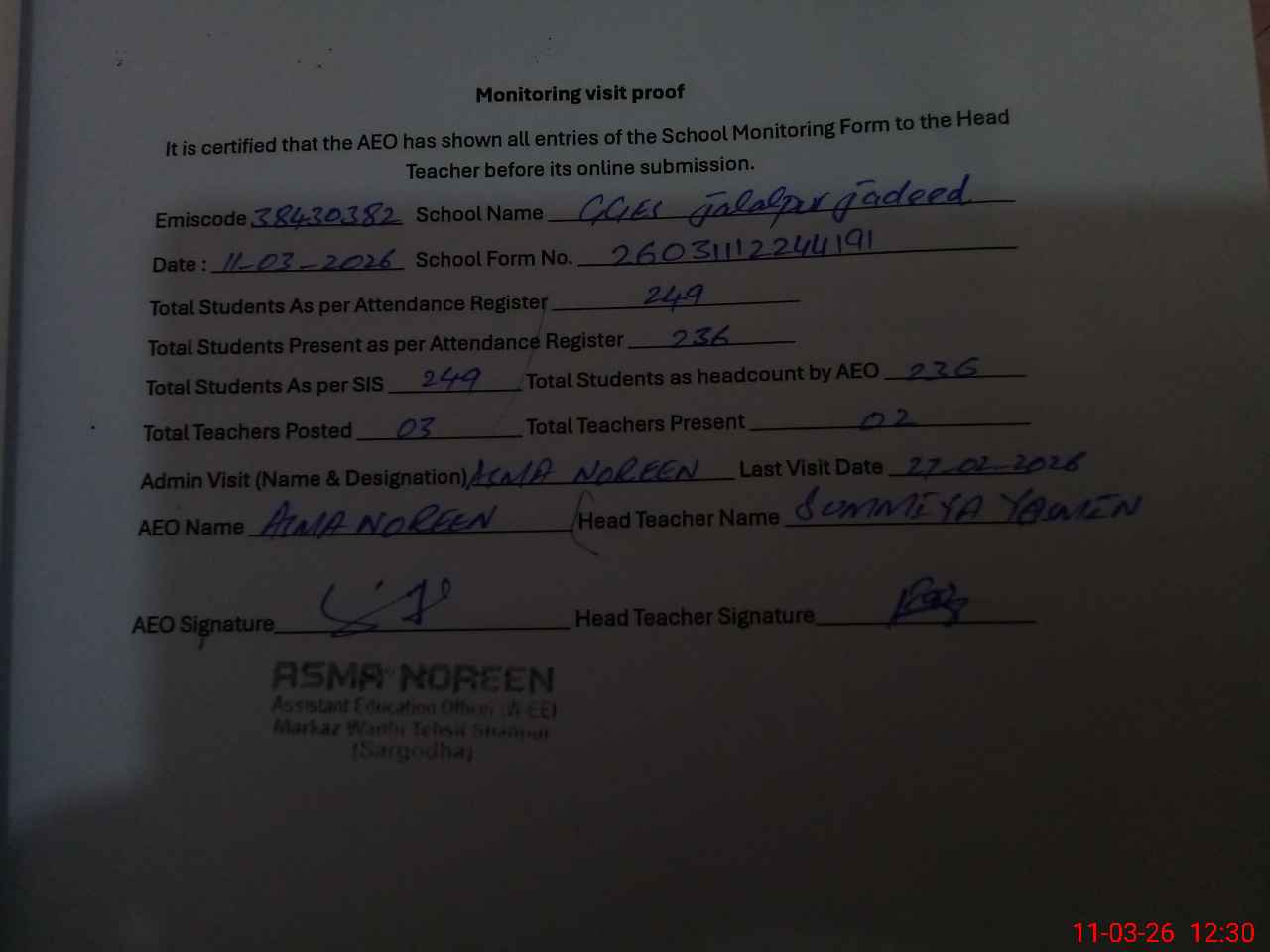 | EMIS Code: 38430382 | Name of School: GGES JALAL PUR JADEED | |||