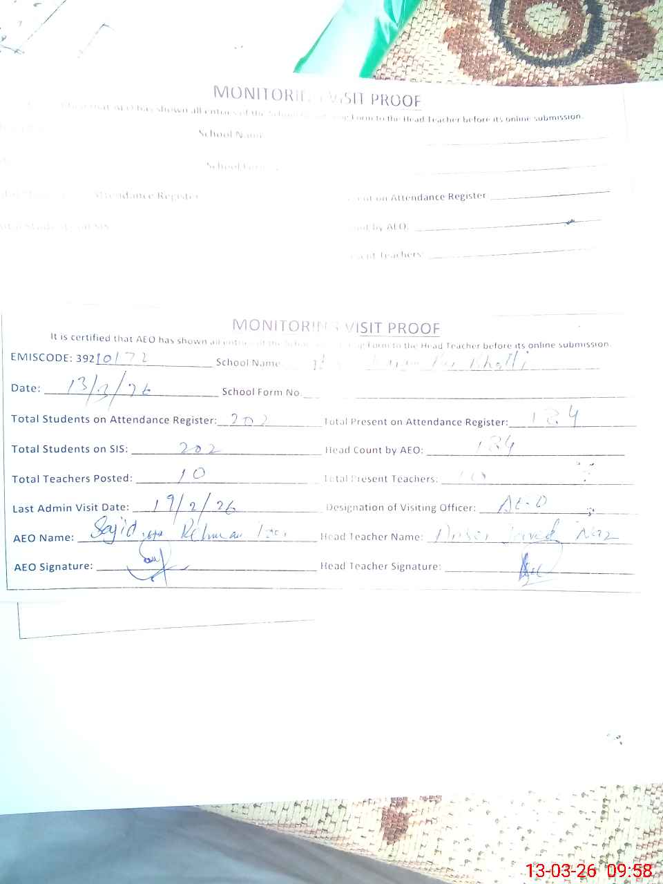 | EMIS Code: 39210172 | Name of School: GES KARAM PUR PO PAKPATTAN | |||
