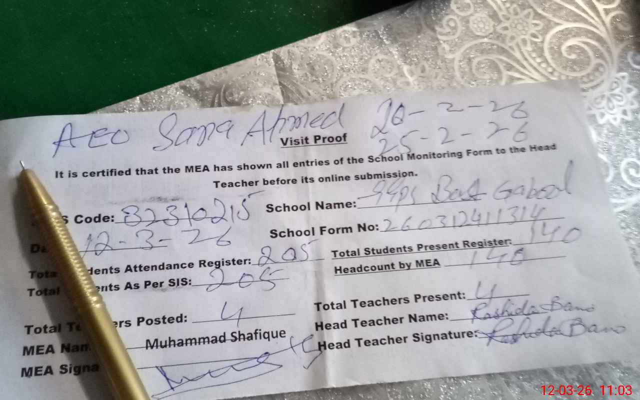 | Attendance Register | Head Teacher | MEA with School | Visit Proof |