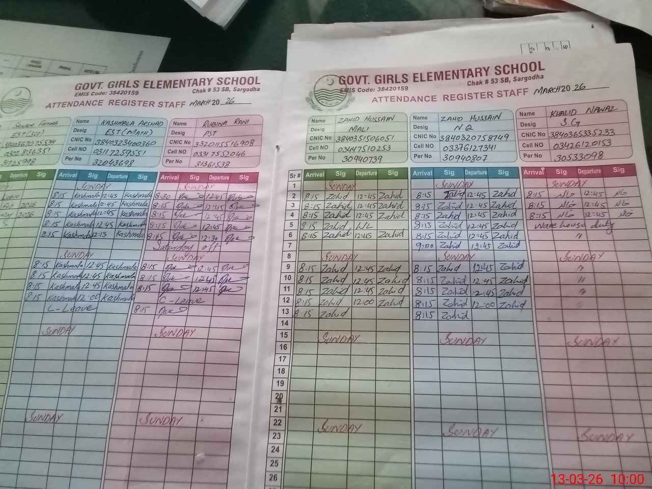 | No CNIC Found | No Name Found | No Designation Found | No R/C Found | 0 | 0 | 0 | 0 | 0 | 0 | 0 | 0 | 0 | No Remarks Found |