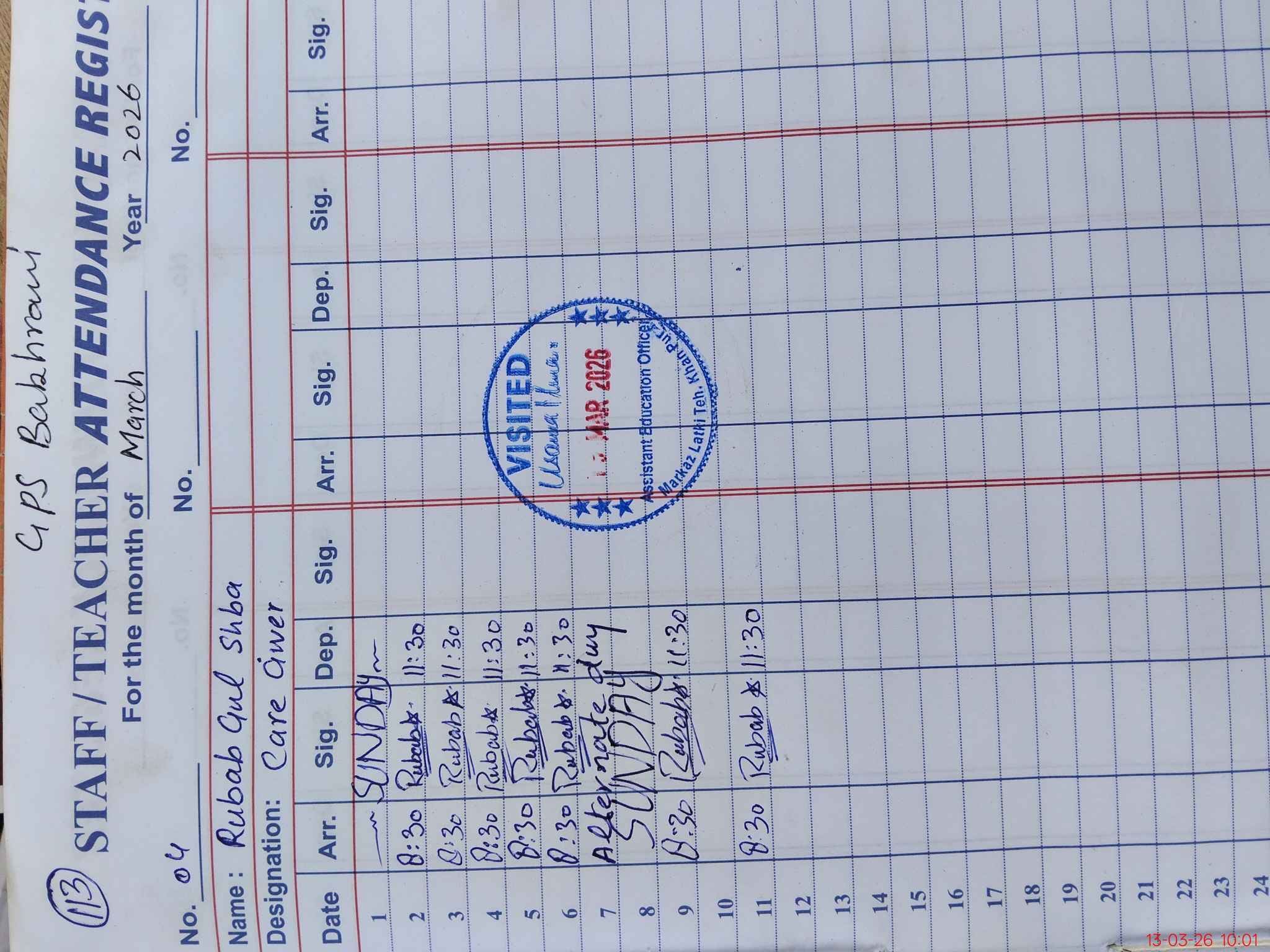 | Sr.No. | Visit Date | Designation | ||