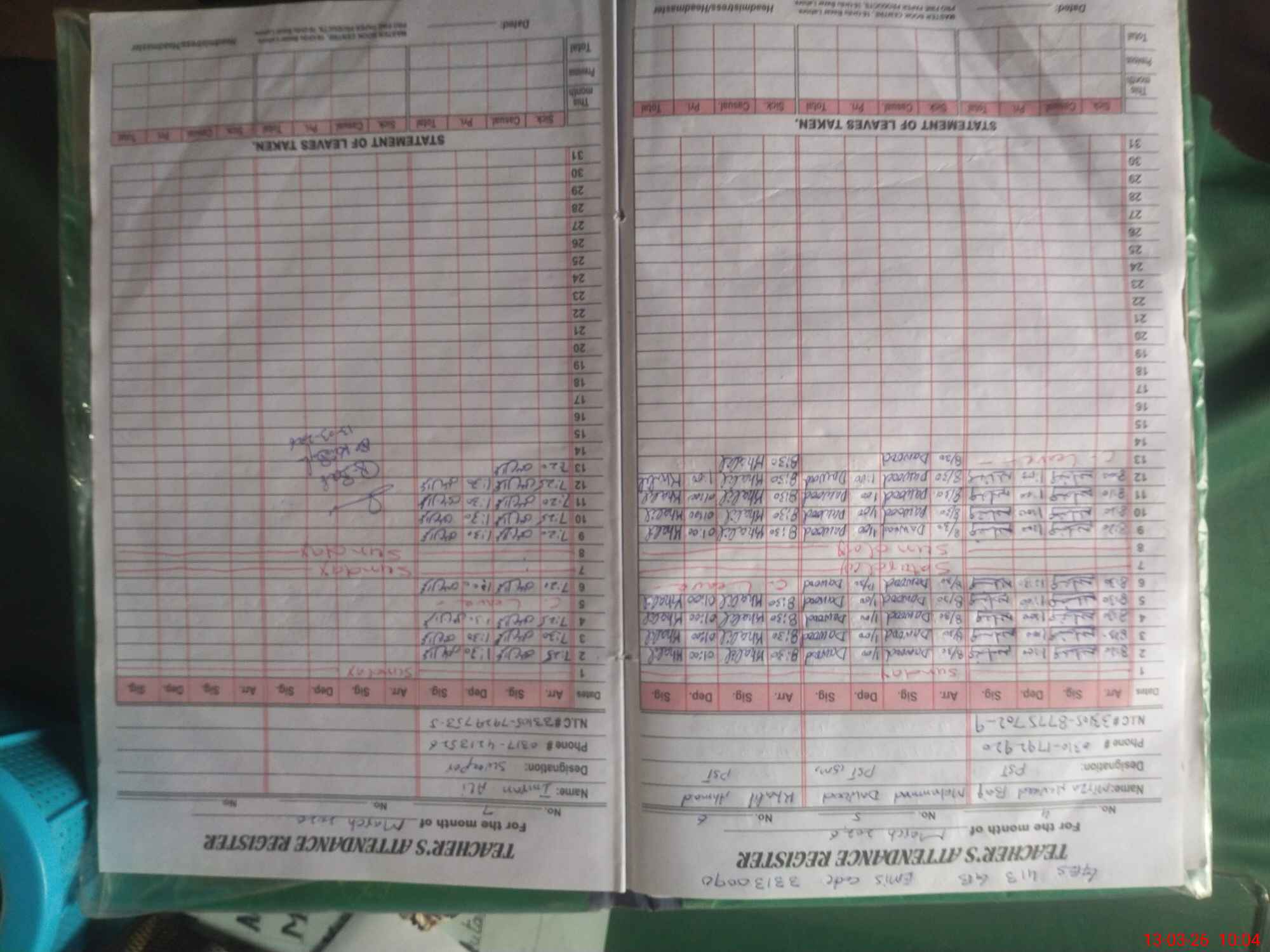 | Name: Mu**** RI**** Designation: (School Headmaster's/Headmistress's) EST (GENERAL) Phone/Cell Number: 03**** |