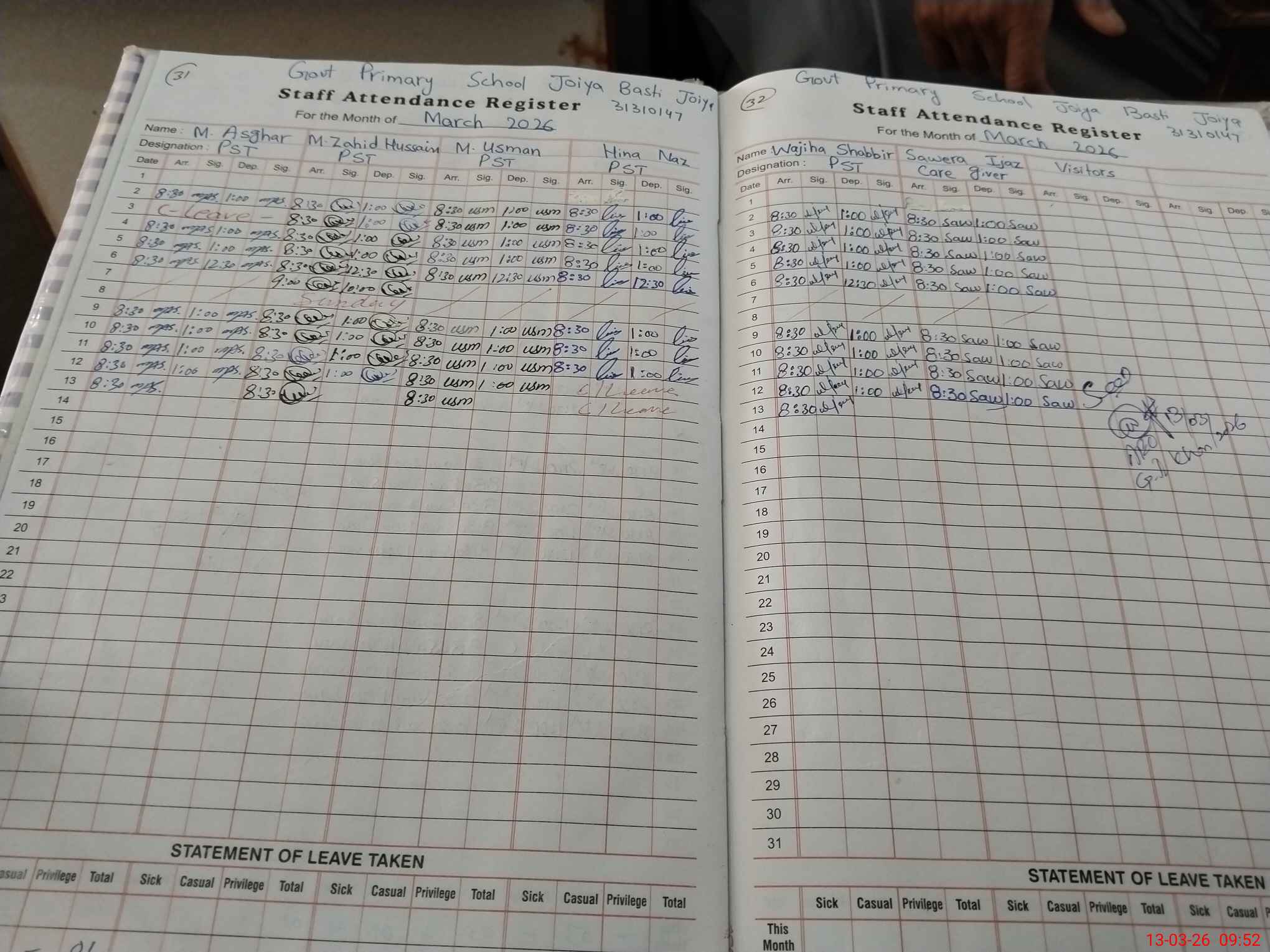 | 41**** | Hi**** Na**** | PST Science/Maths | Regular | 0 | 0 | 0 | 0 | 0 | 0 | 0 | 0 | 0 | Casual |
