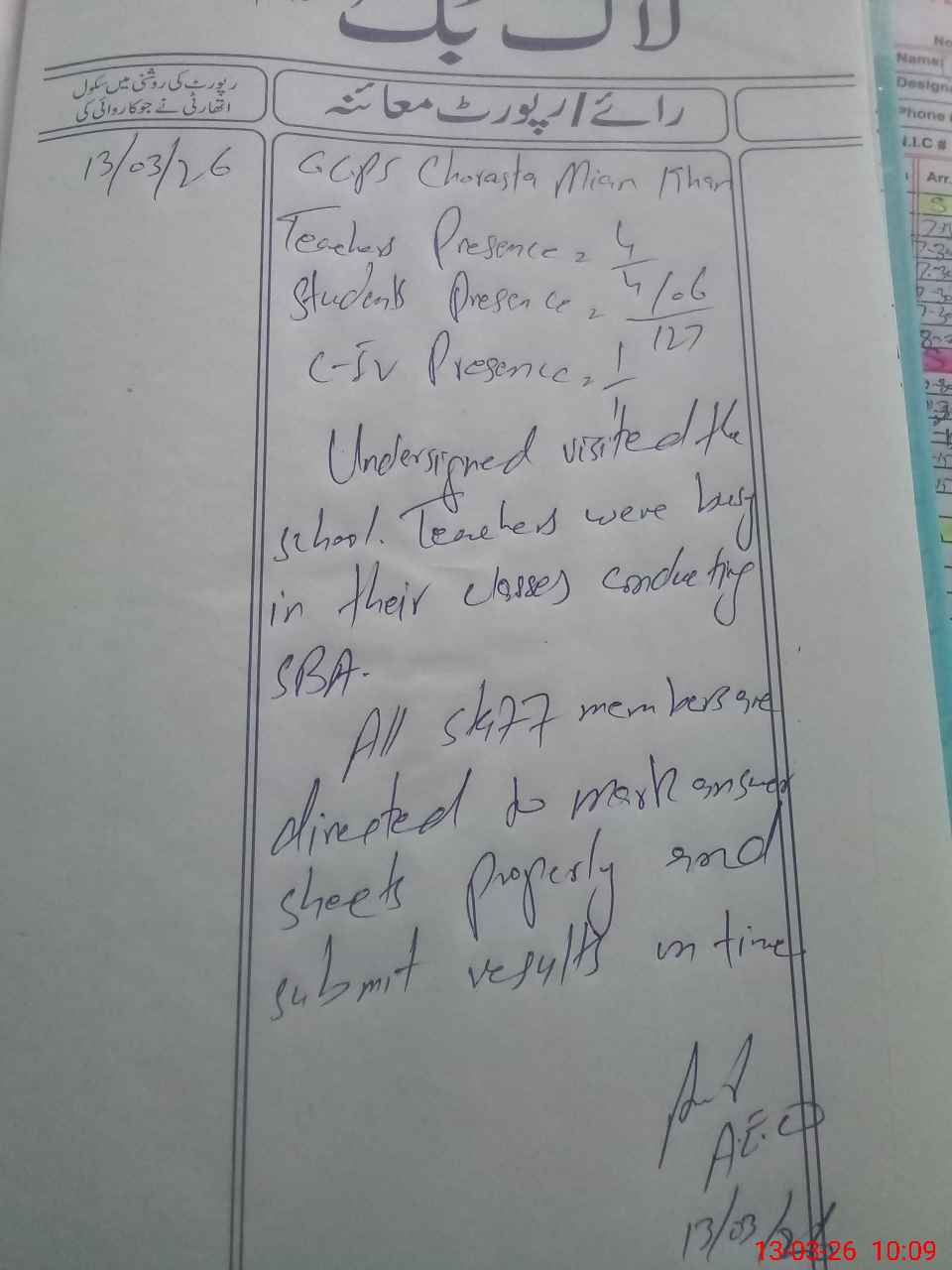 | Name: Af**** Ba**** Designation: (School Headmaster's/Headmistress's) PST Phone/Cell Number: 03**** |