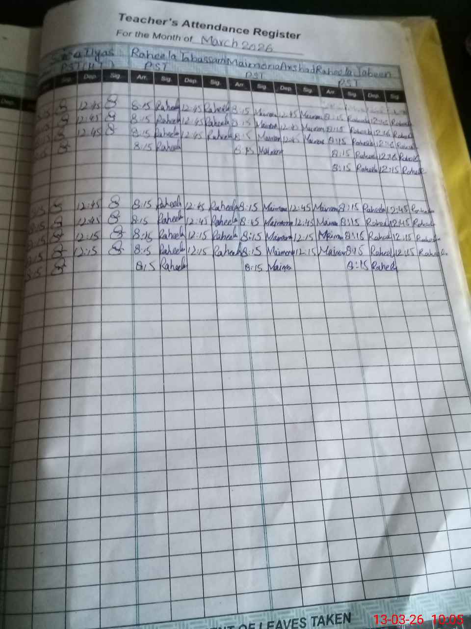 | Leave | Duty | Absent | Maternity | Medical | Ex- Pak |