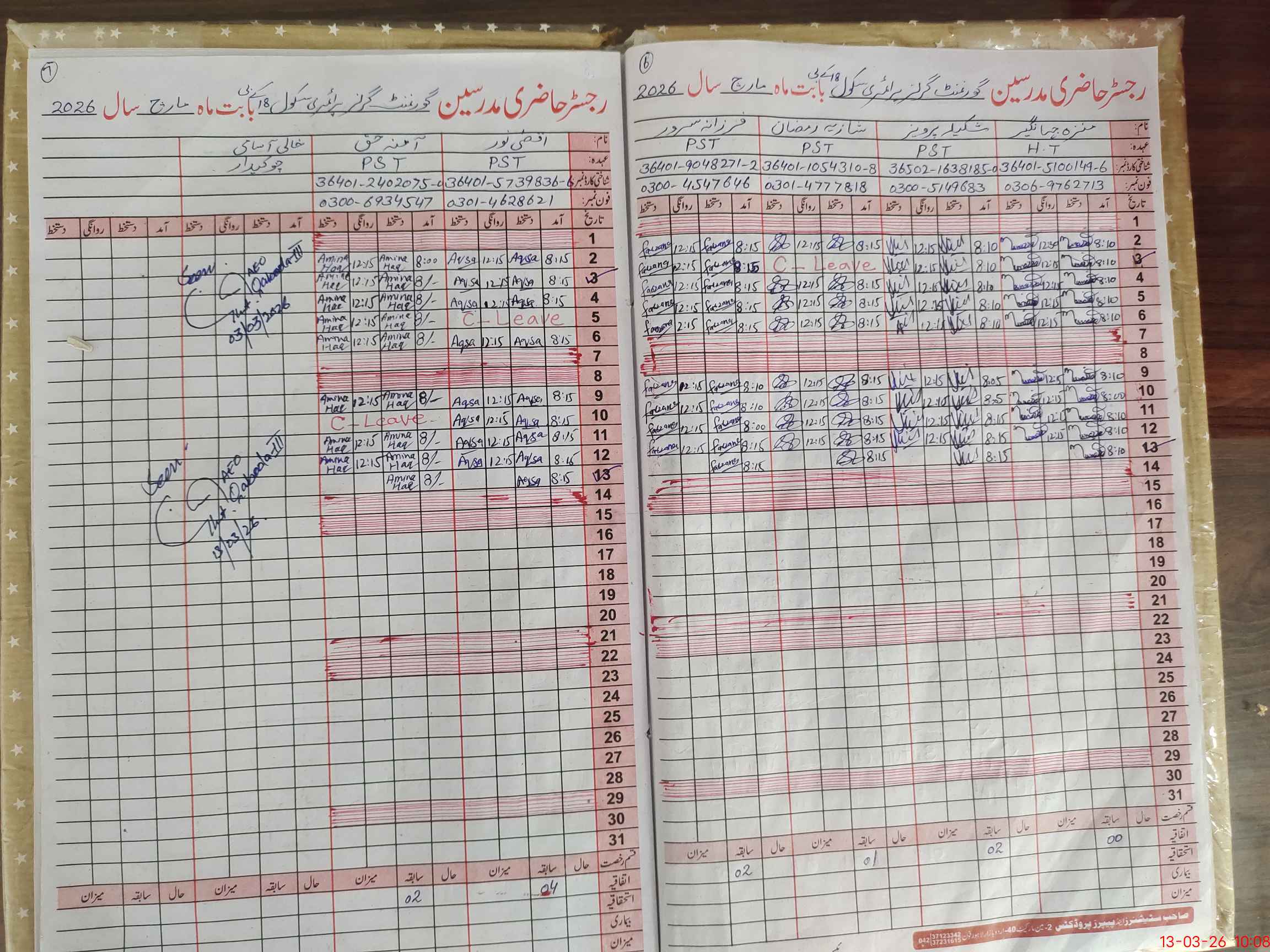 | Name: MU**** JA**** Designation: (School Headmaster's/Headmistress's) PST Phone/Cell Number: 03**** |