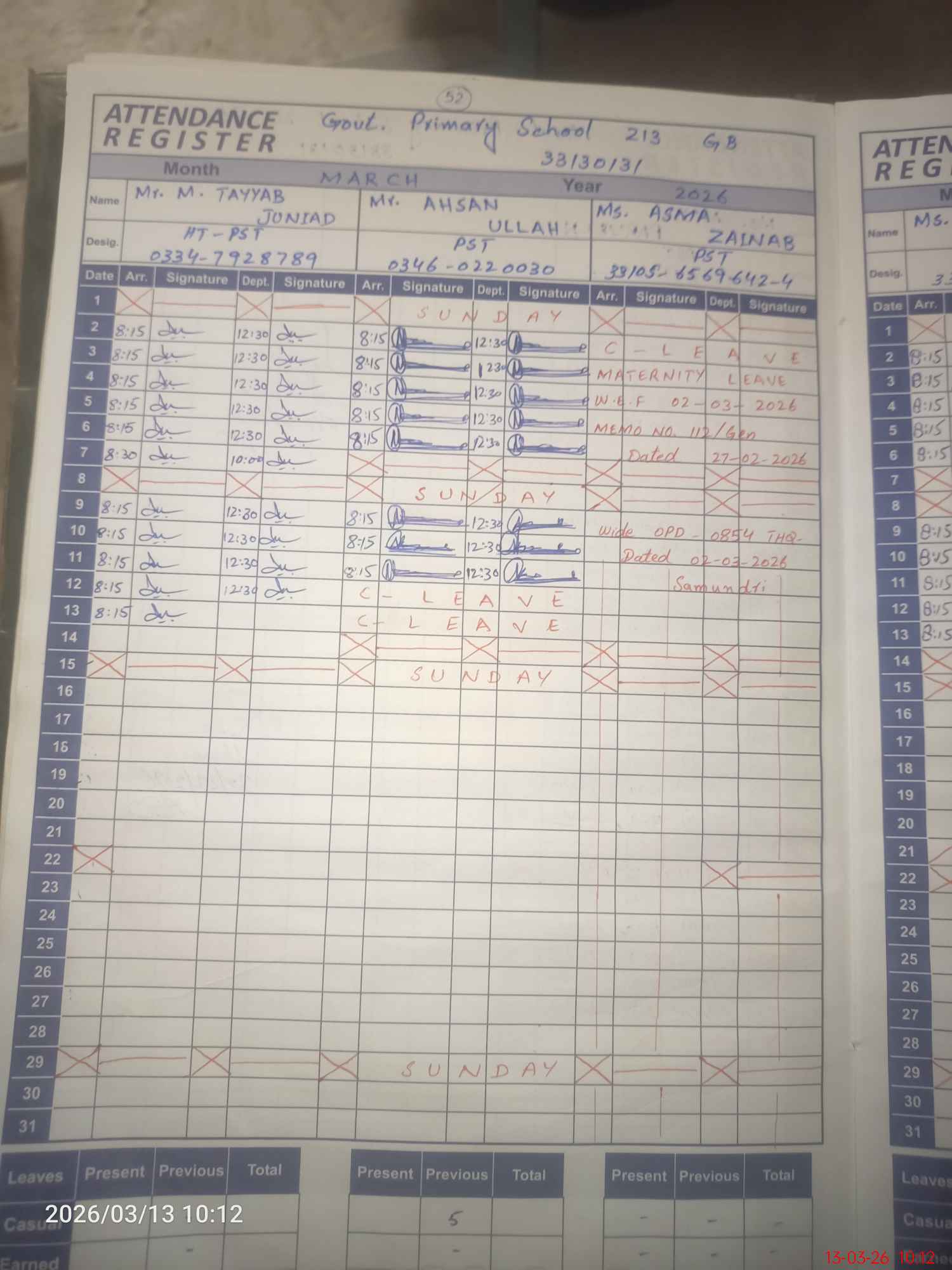 | Name: MTA**** JU**** Designation: (School Headmaster's/Headmistress's) PST Phone/Cell Number: 03**** |