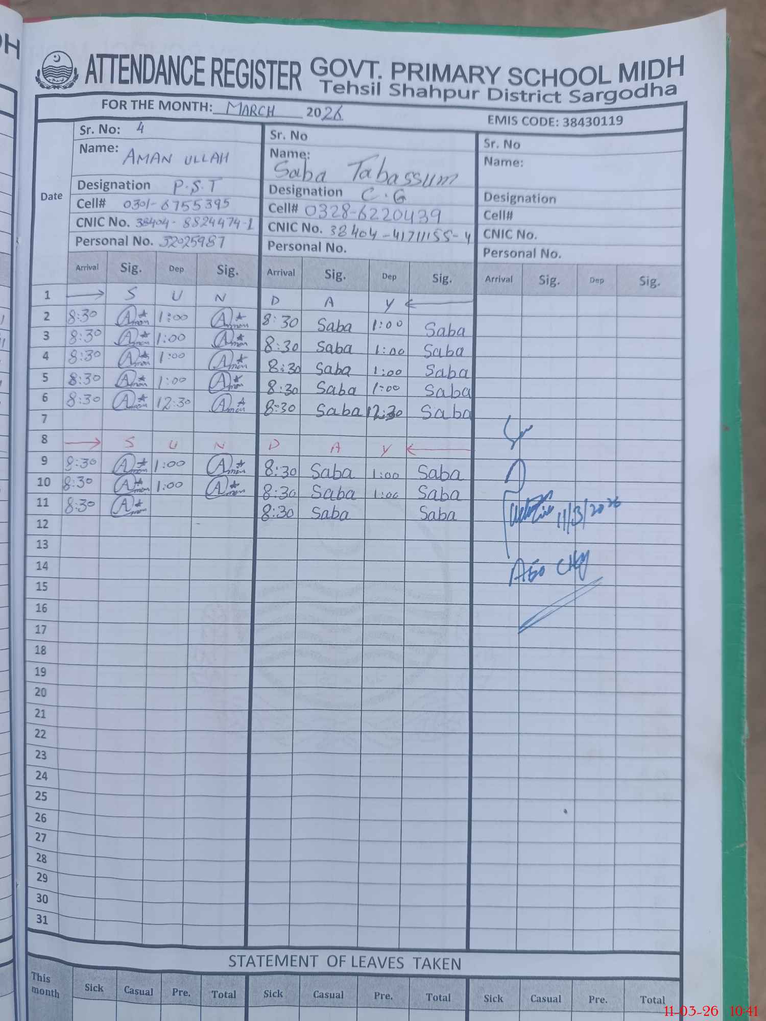 | Name: MU**** RA**** Designation: (School Headmaster's/Headmistress's) PST (SC MATH ) Phone/Cell Number: 03**** |