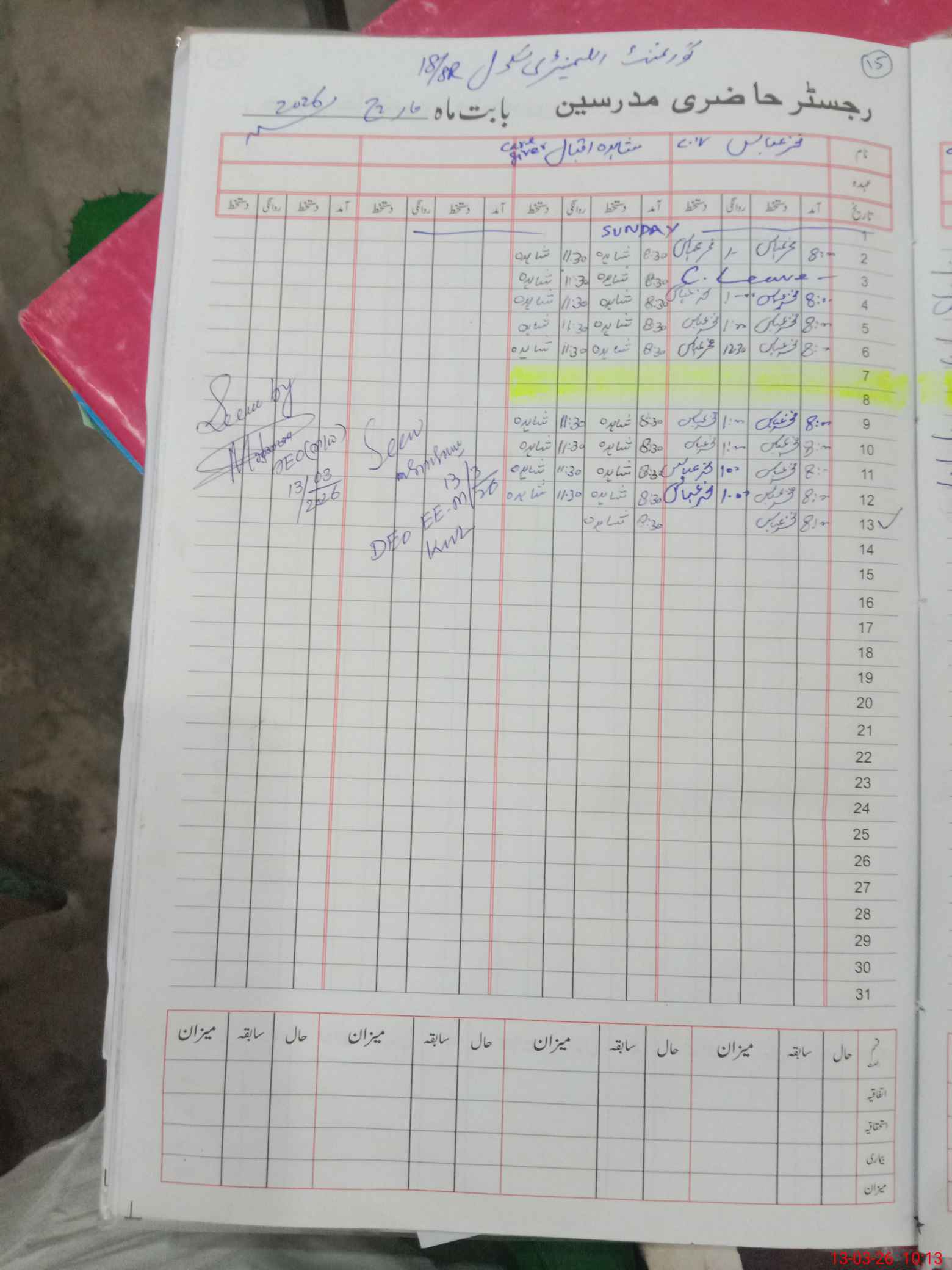 | CNIC | Full Name | Designation | R/C | Absence During Last Calender Month |