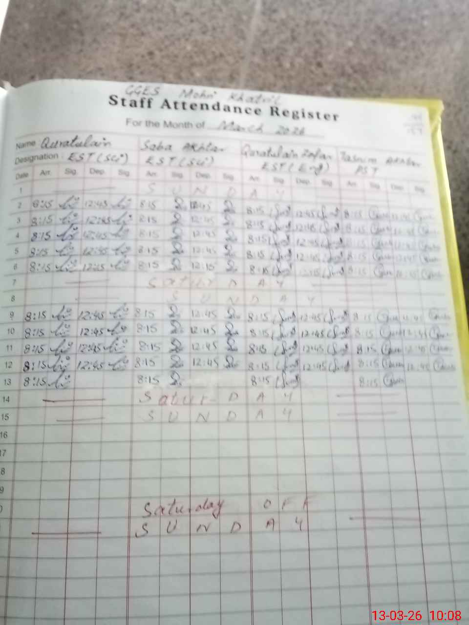 | Monitoring Date: 13-03-2026 | Start Time: 13-03-2026 09:59 AM | End Time: 13-03-2026 10:18 AM | Name of MEA: Na**** Al**** | |