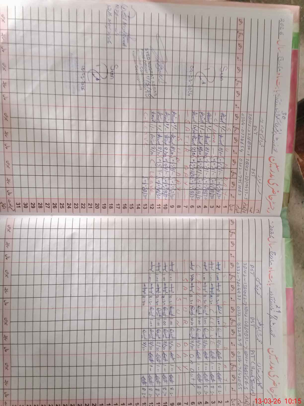 | Leave | Duty | Absent | Maternity | Medical | Ex- Pak |