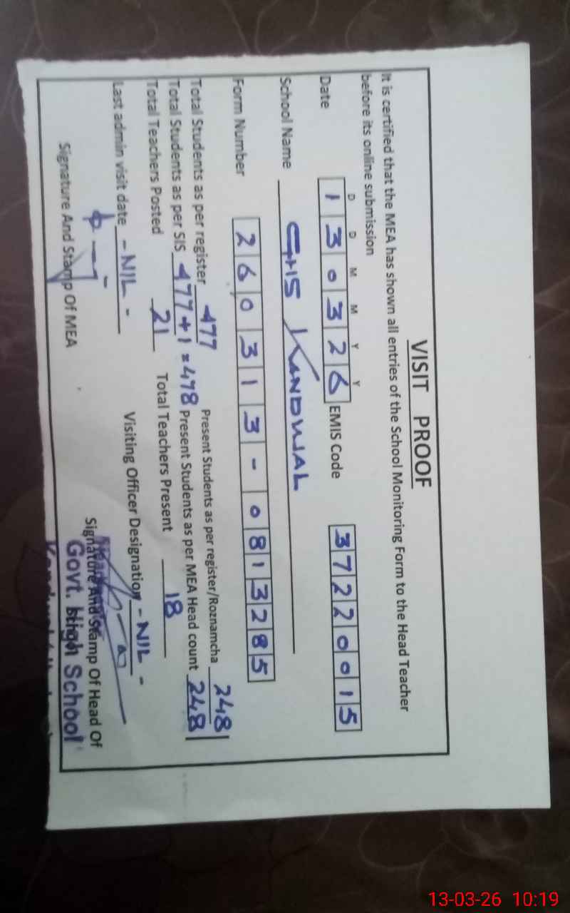 | EMIS Code: 37220015 | Name of School: GHS KANDWAL | |||