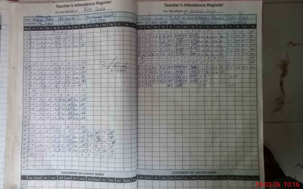 | Name: Fa**** Sh**** Designation: (School Headmaster's/Headmistress's) S.S.T Arts Phone/Cell Number: 03**** |