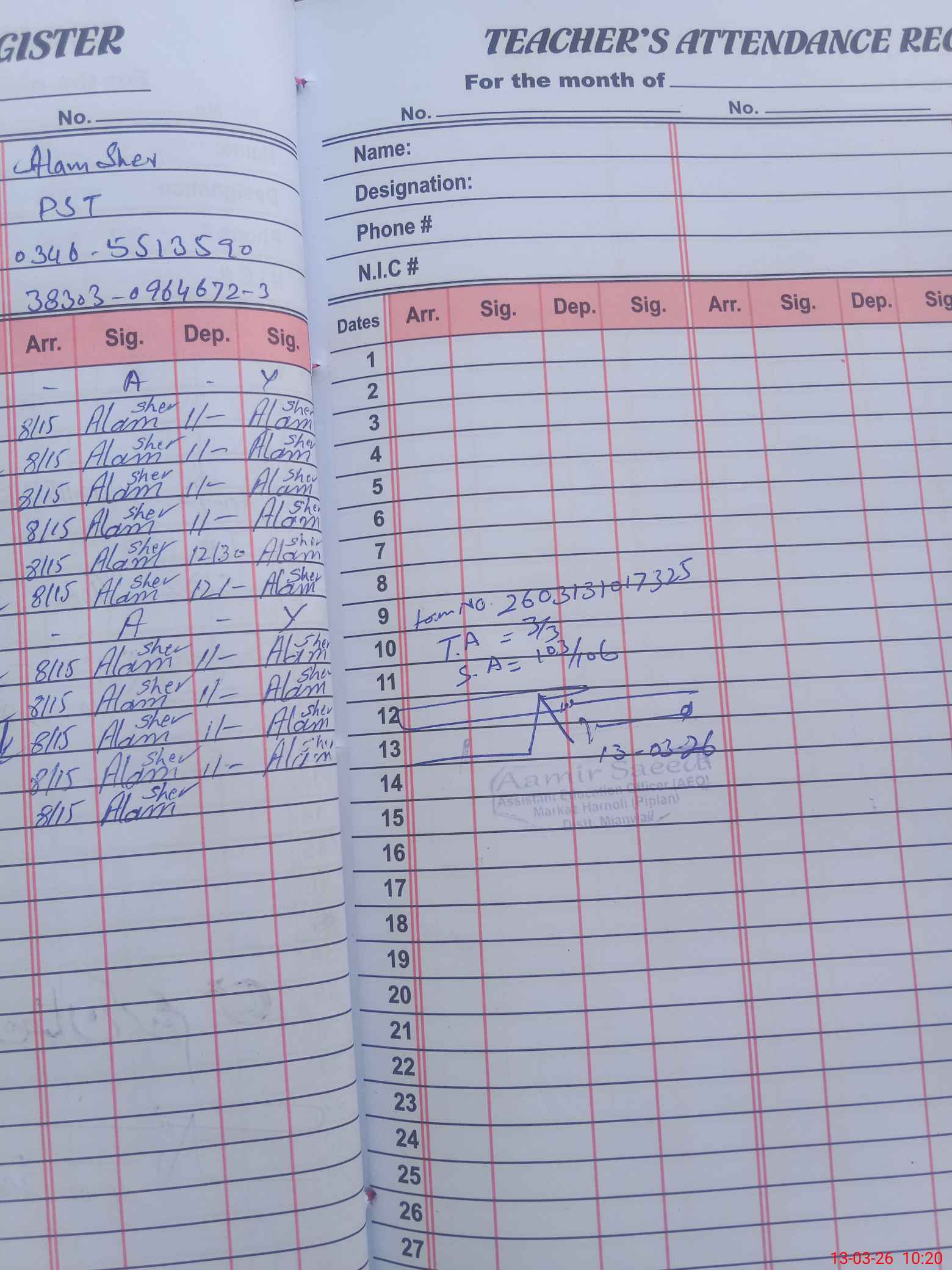 | Name: MSa**** Ah**** Designation: (School Headmaster's/Headmistress's) PST Phone/Cell Number: 03**** |
