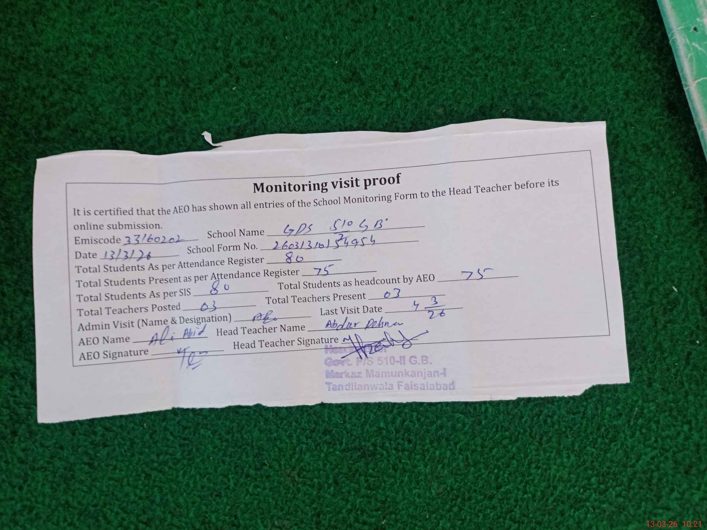 | EMIS Code: 33160202 | Name of School: GPS CHAK 510 GB II MAMUNKANJAN | |||