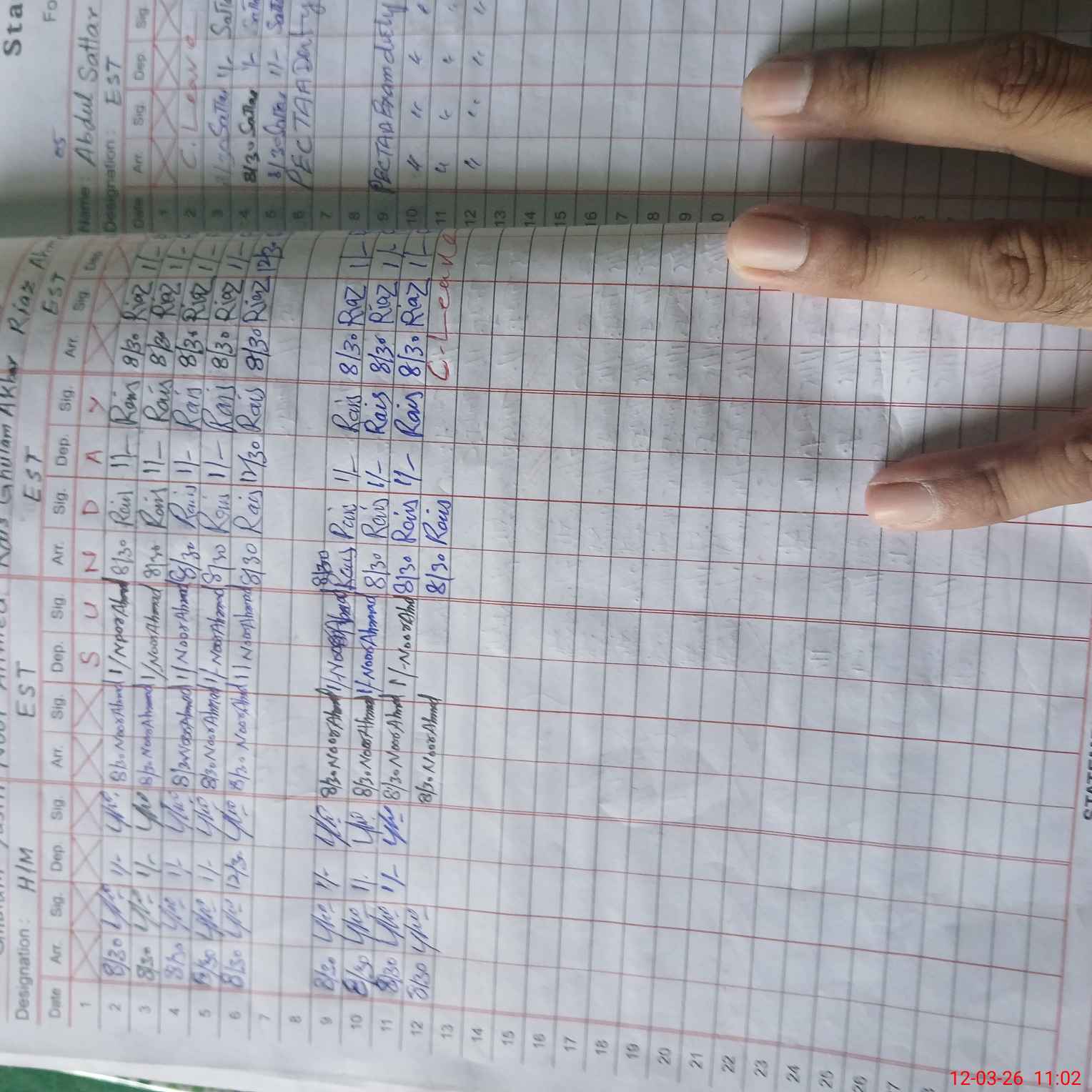| CNIC | Full Name | Designation | R/C | Absence During Last Calender Month |