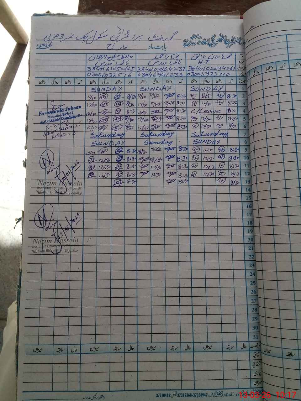 | Name: Mu**** Ha**** Kh**** Designation: (School Headmaster's/Headmistress's) PST Phone/Cell Number: 03**** |