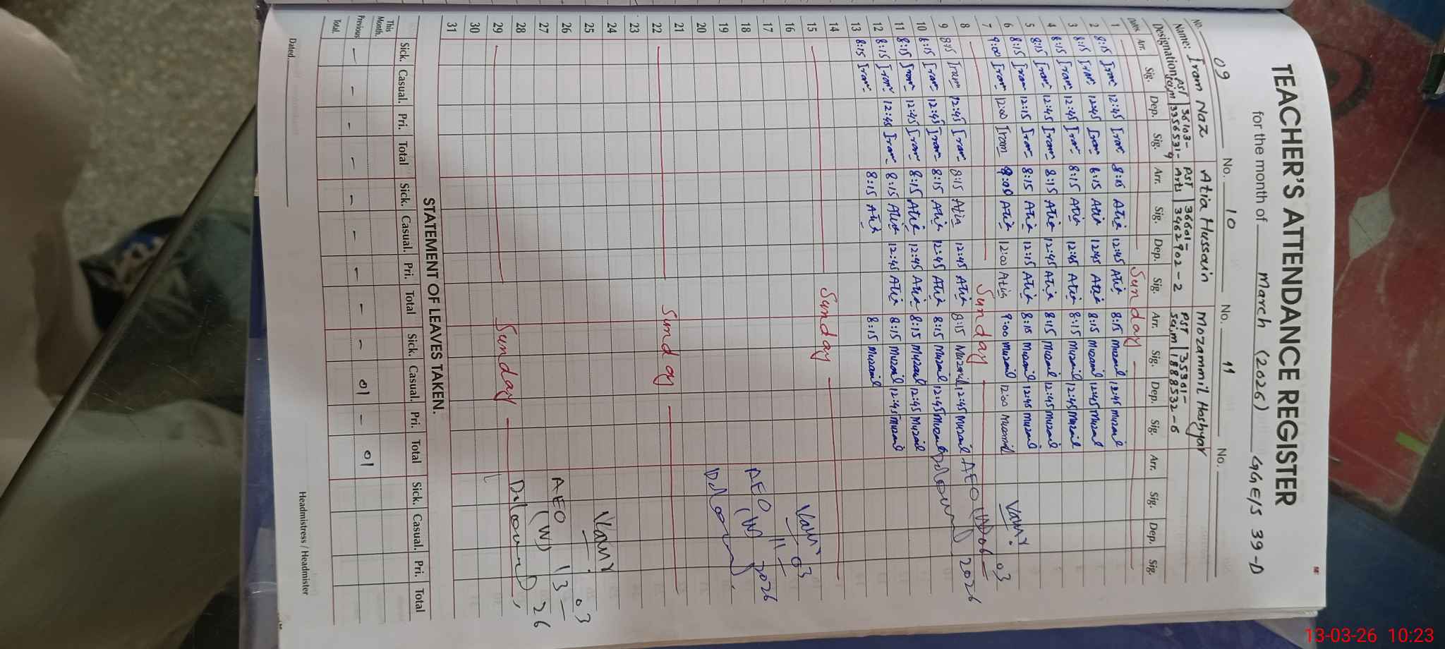 | 35**** | Aq**** Sh**** | PST | Regular | 0 | 0 | 0 | 0 | 0 | 0 | 0 | 0 | 0 | Maternity |