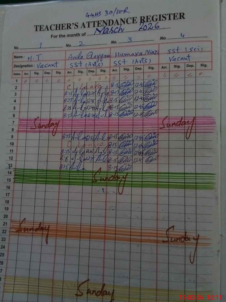 | EMIS Code: 36420114 | Name of School: GGHS 30/10-R, KACHA KHUH | |||